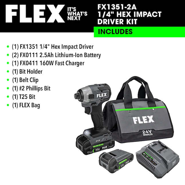 FLEX FX1351-2A 24-volt 1/4-in Variable Brushless Cordless Impact Driver (2-Batteries Included)