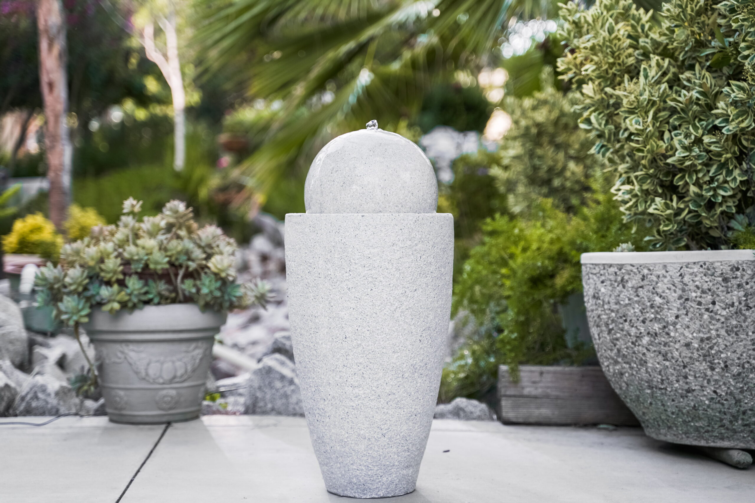 XBrand Modern Stone Textured Round Sphere Water Fountain w/LED Lights. Indoor Outdoor Décor. 25.6 Inch Tall. Grey