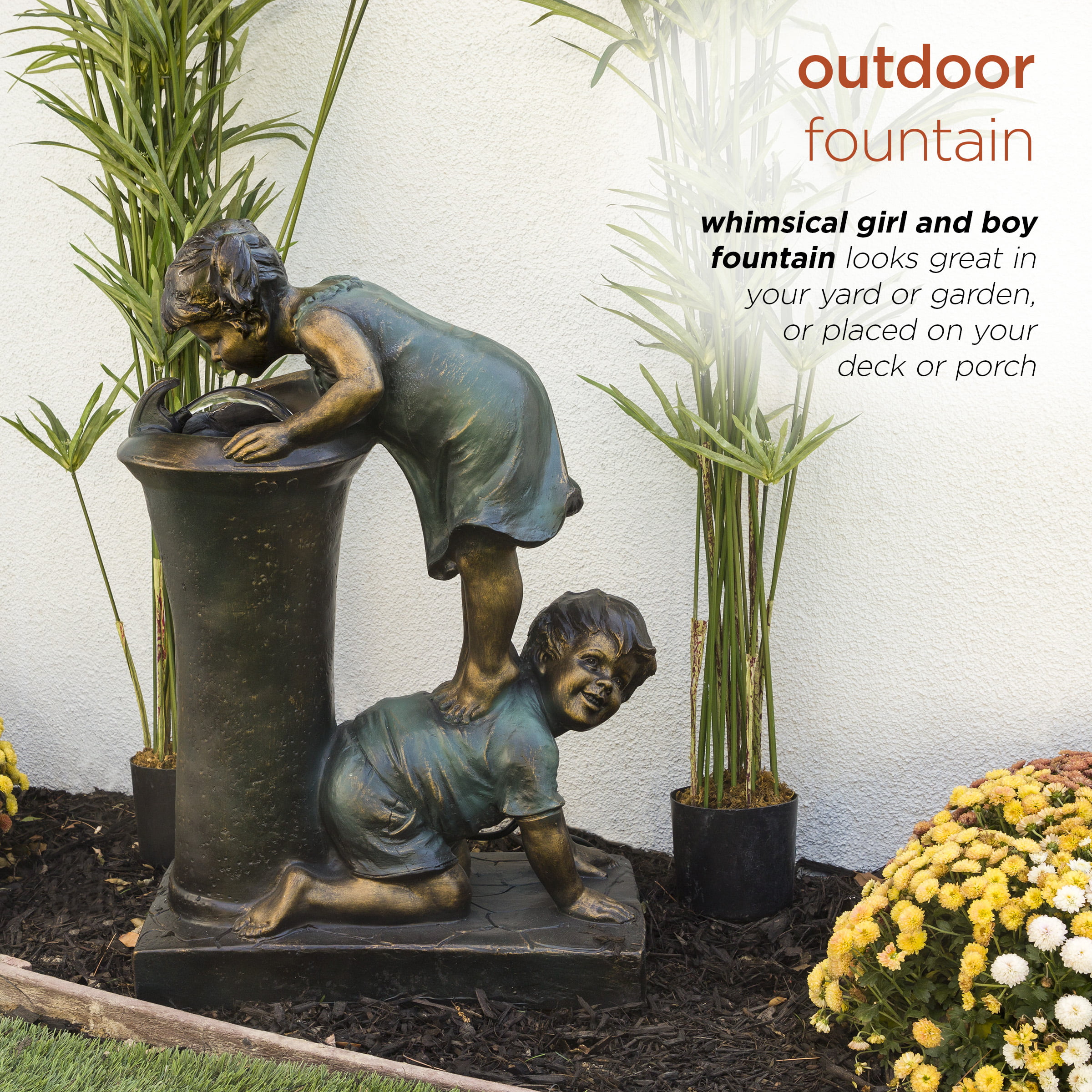 Alpine Corporation Indoor/Outdoor Girl and Boy Drinking Water Fountain. Stone