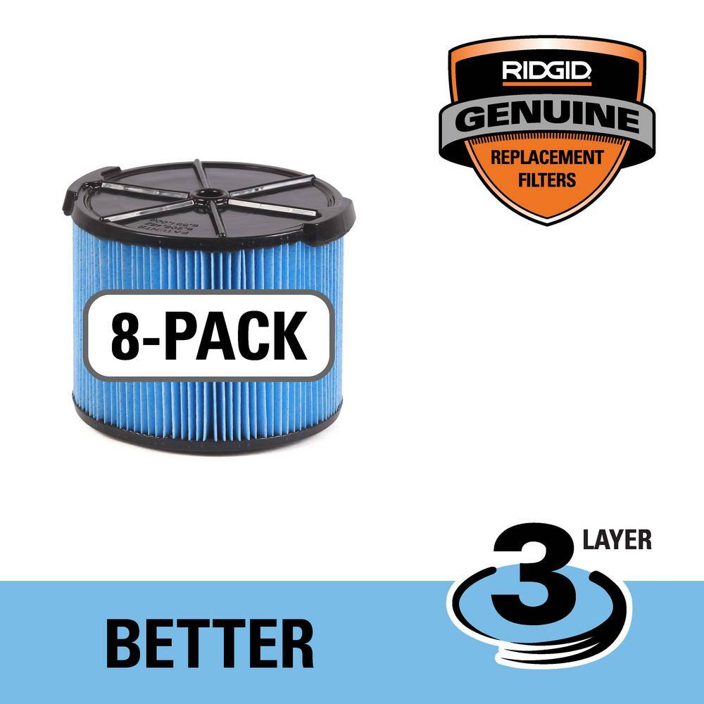 RIDGID VF3500B 3-Layer Fine Dust Pleated Paper Filter for 3 to 4.5 Gallon RIDGID Wet/Dry Shop Vacuums (8-Pack)