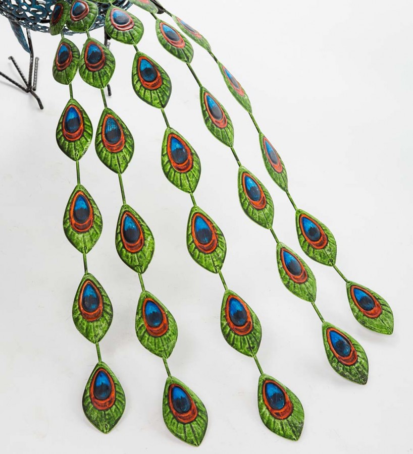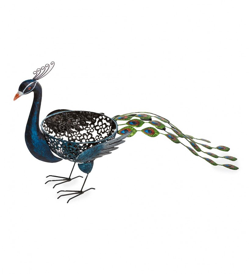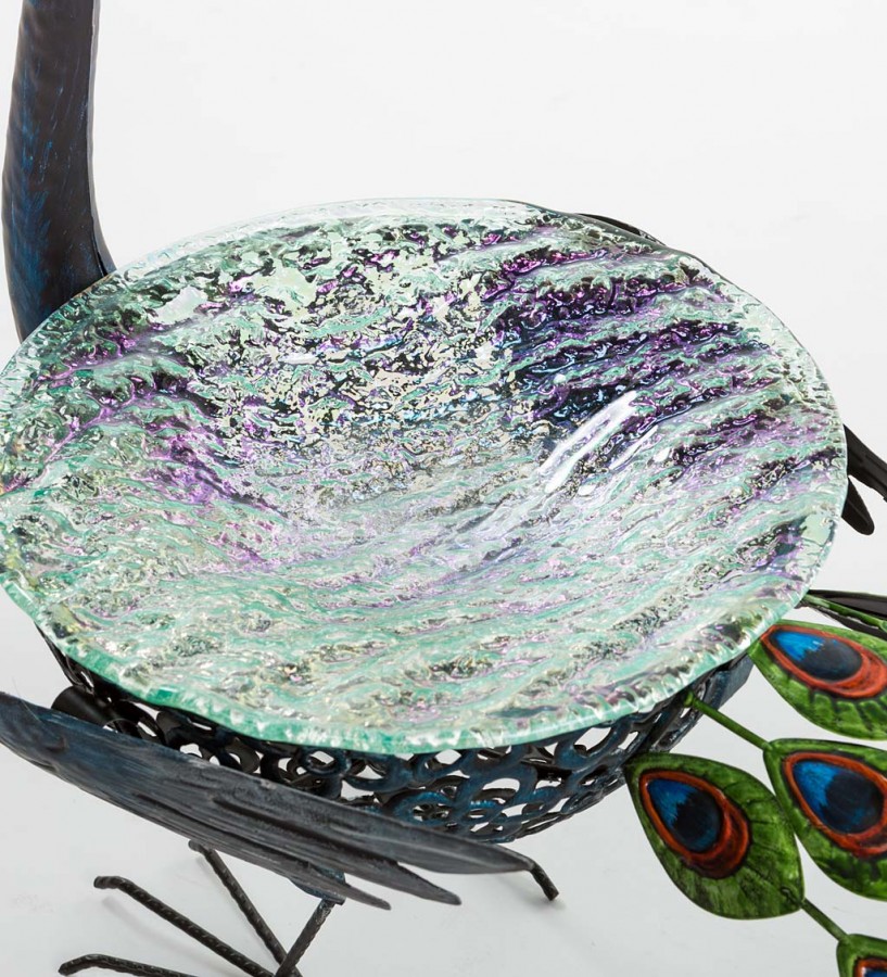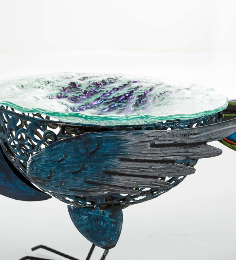 Wind & Weather Vibrant Metal Peacock Birdbath with Glass Bowl