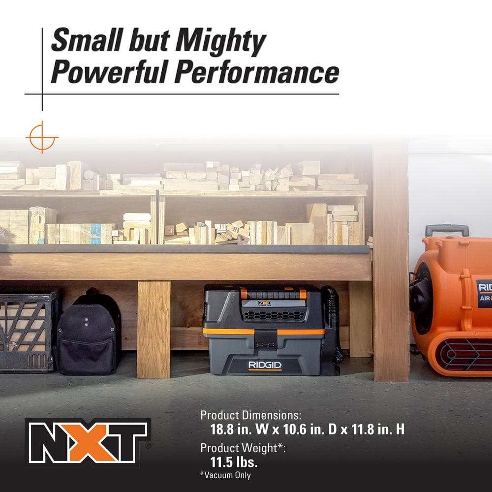 RIDGID HD0320 3 Gal. 18-Volt Cordless Handheld NXT Wet/Dry Vacuum with Battery. Charger. Fine Dust Filter. Hose and Accessories