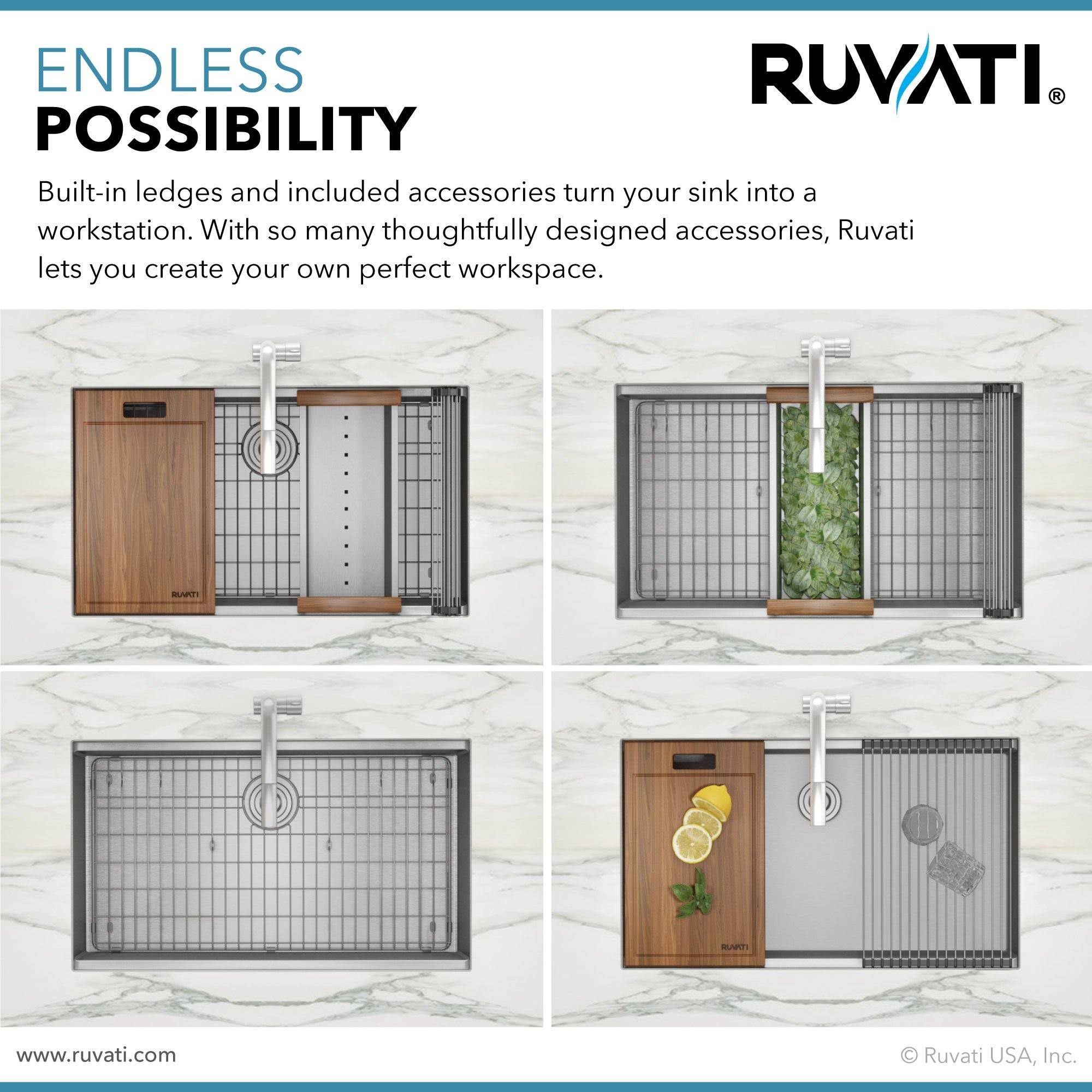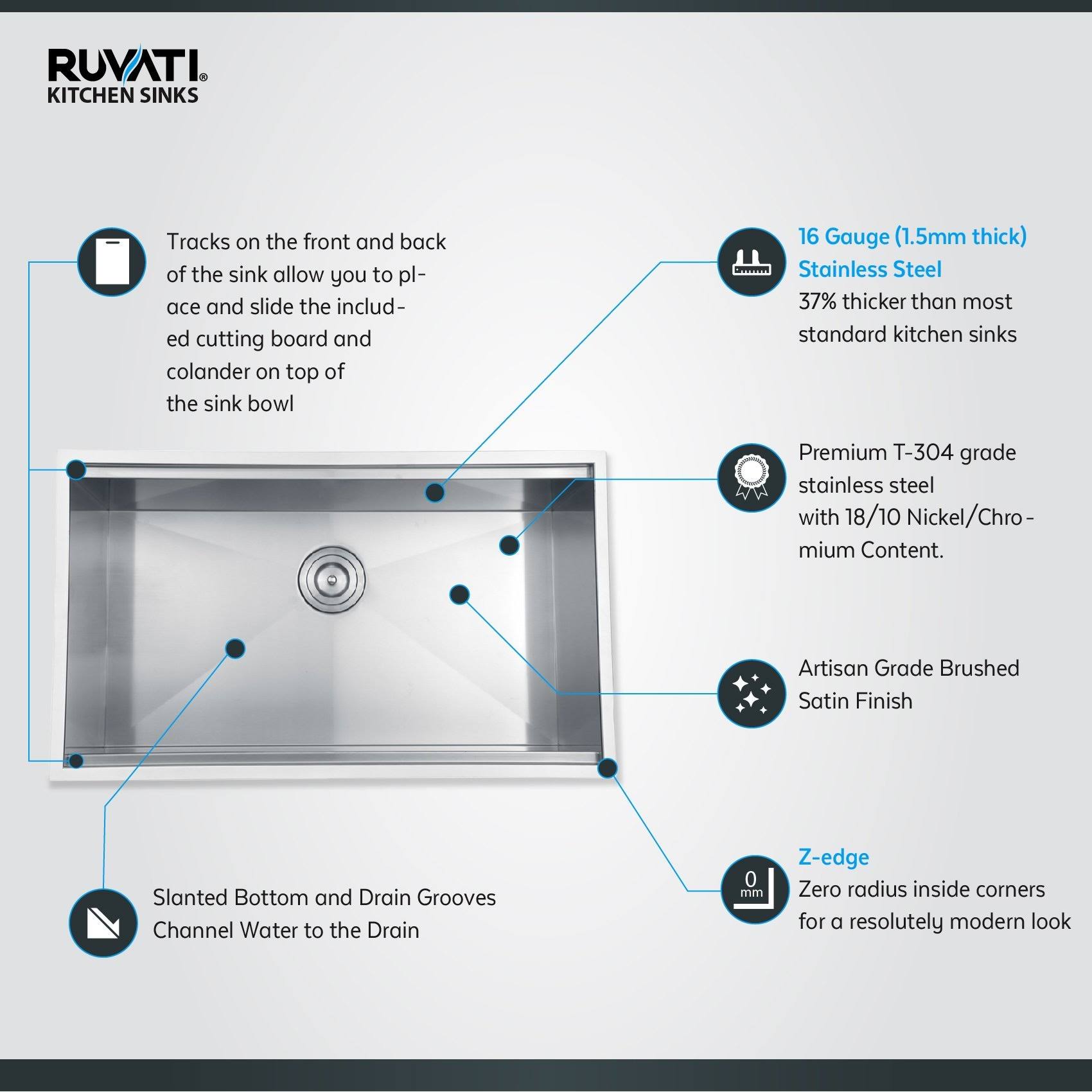 Ruvati RVH8300 Undermount 16 Gauge 32" Kitchen Sink Single Bowl Stainless Steel