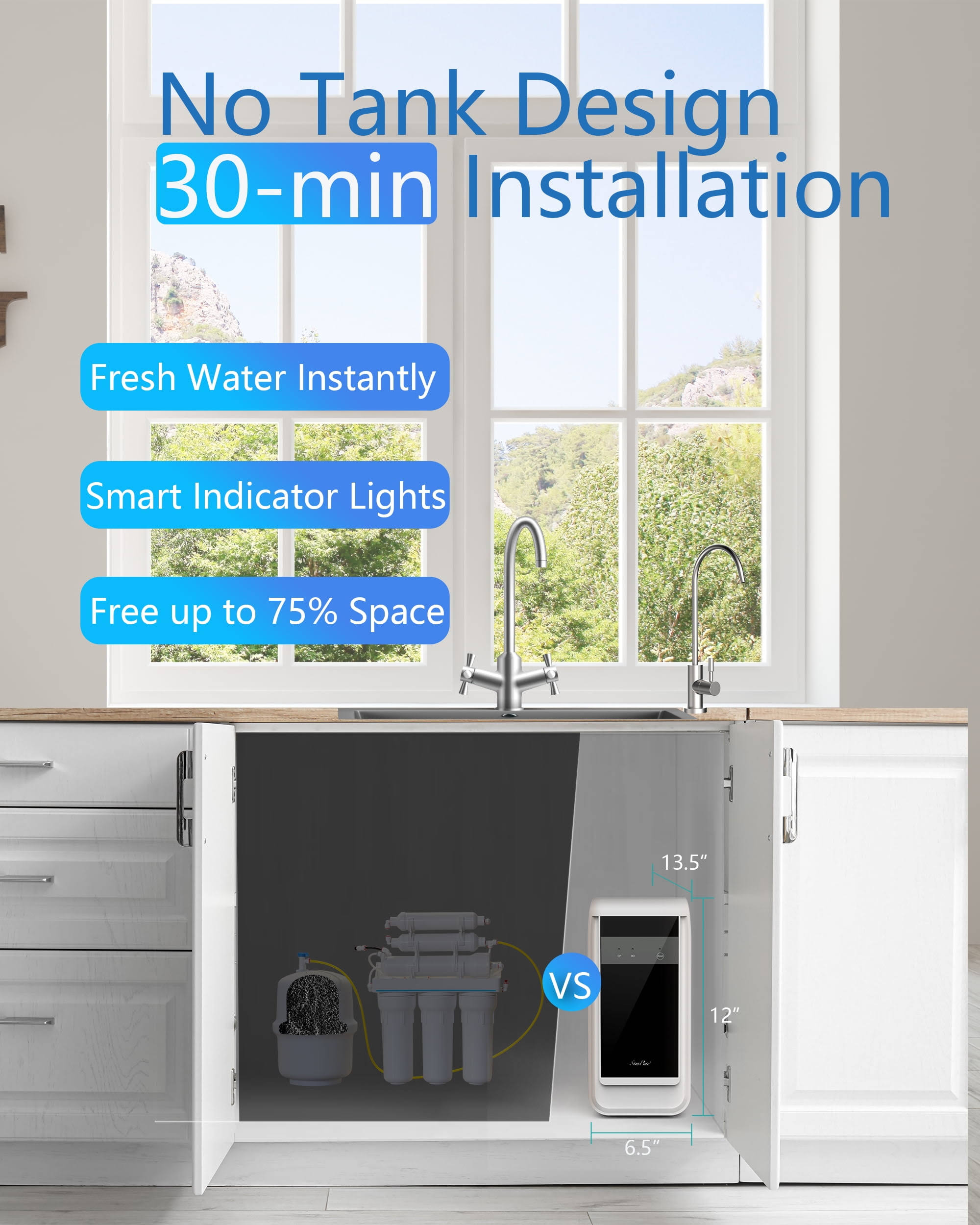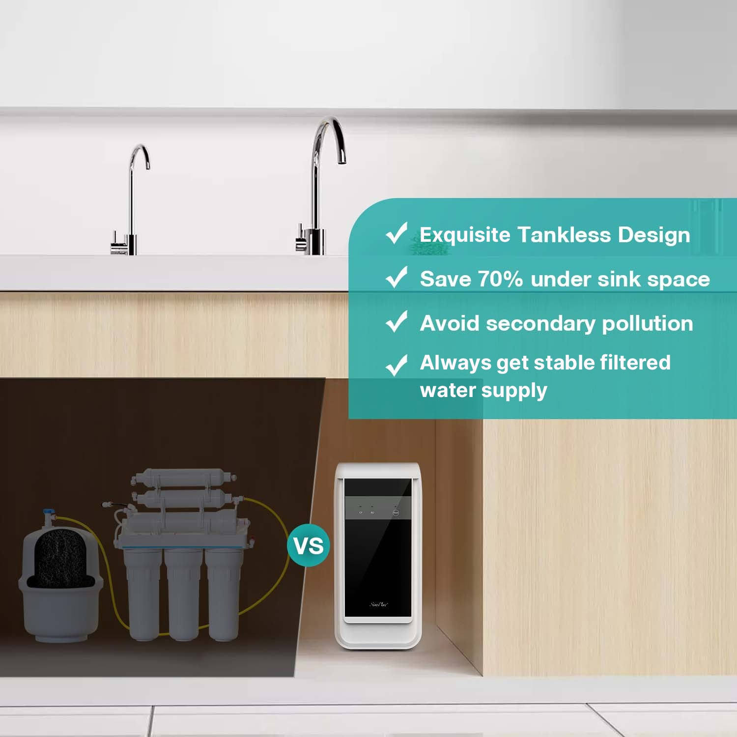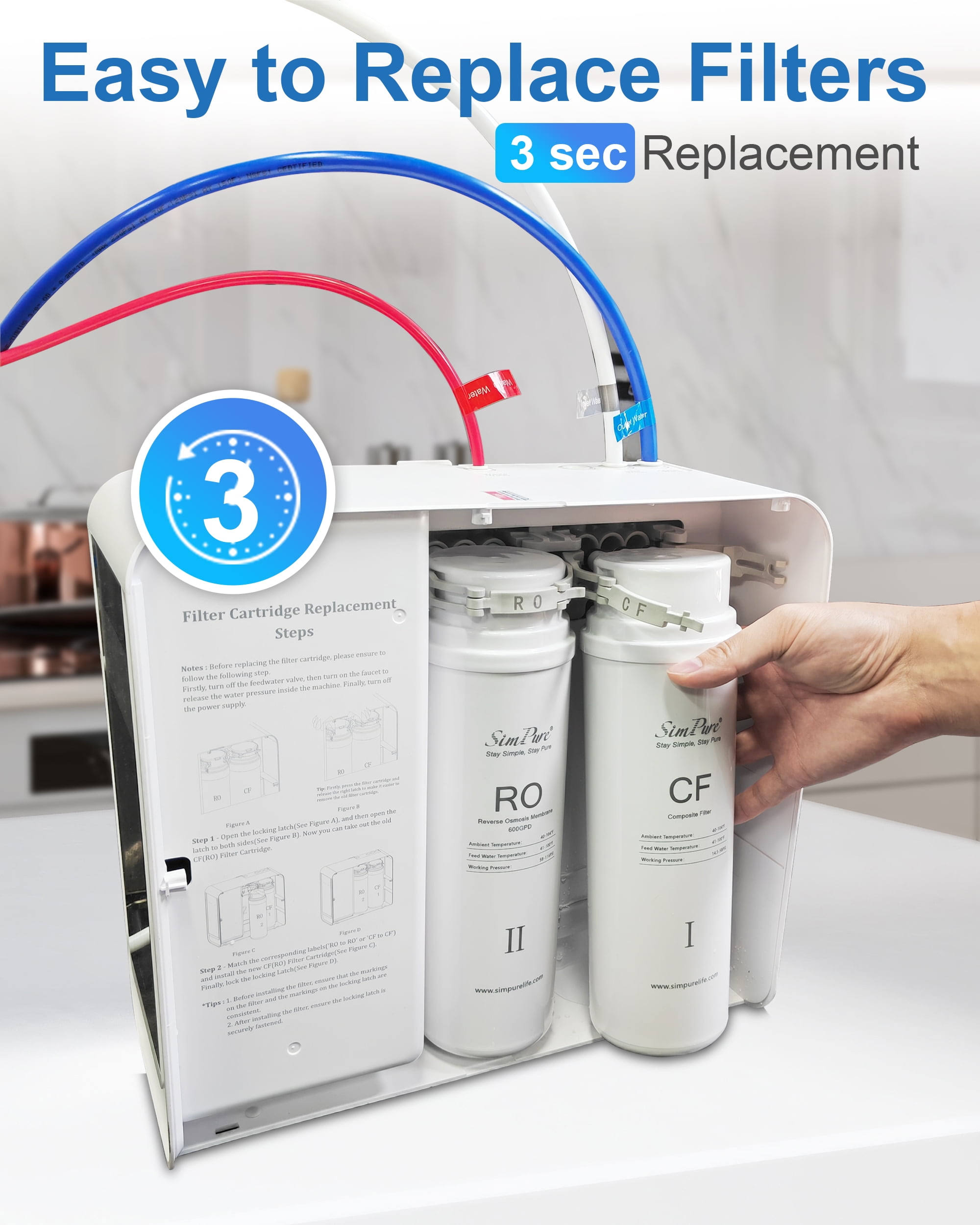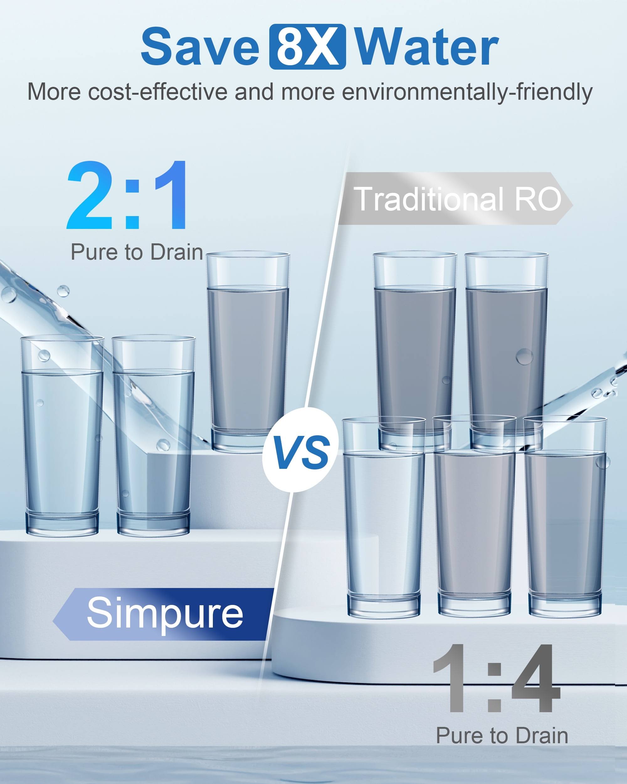 Simpure Reverse Osmosis System, 600 gpd Tankless Under Sink Water Filter System with Faucet, 2:1 Pure to Drain, Reduces TDS, High Flow, Easy