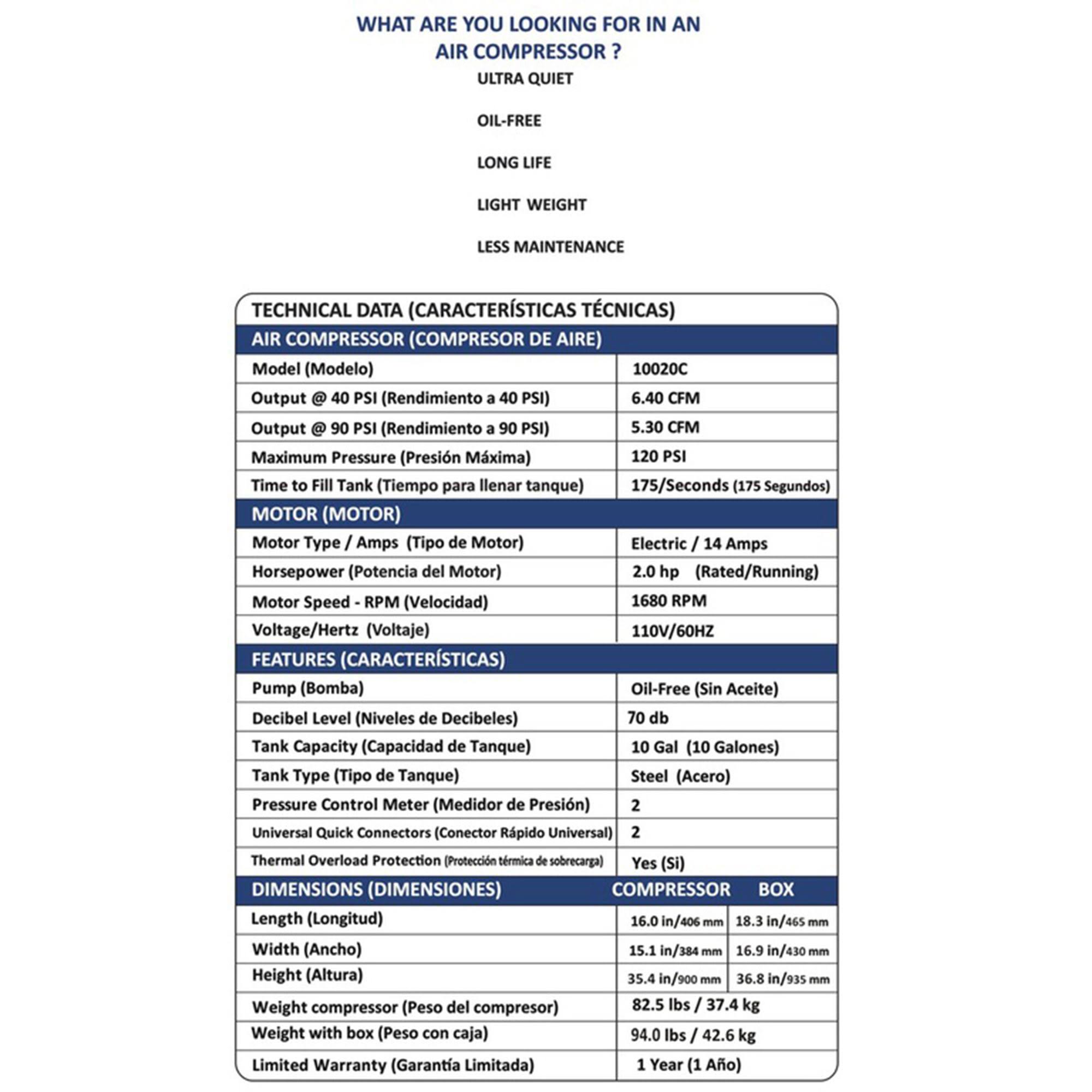 California Air Tools Air Compressor Ultra Quiet Oil-Free 2-HP 10-Gallons Cat-10020c