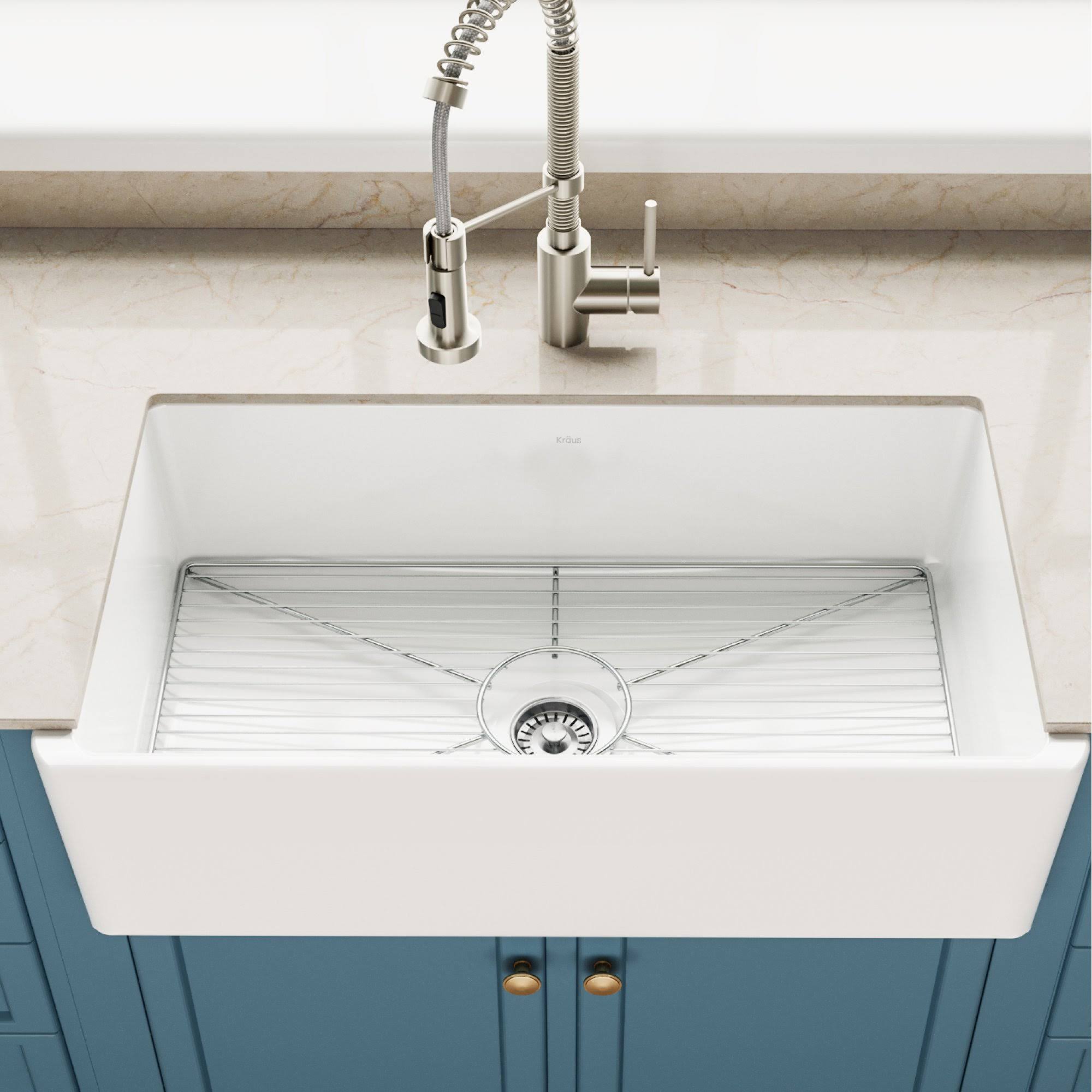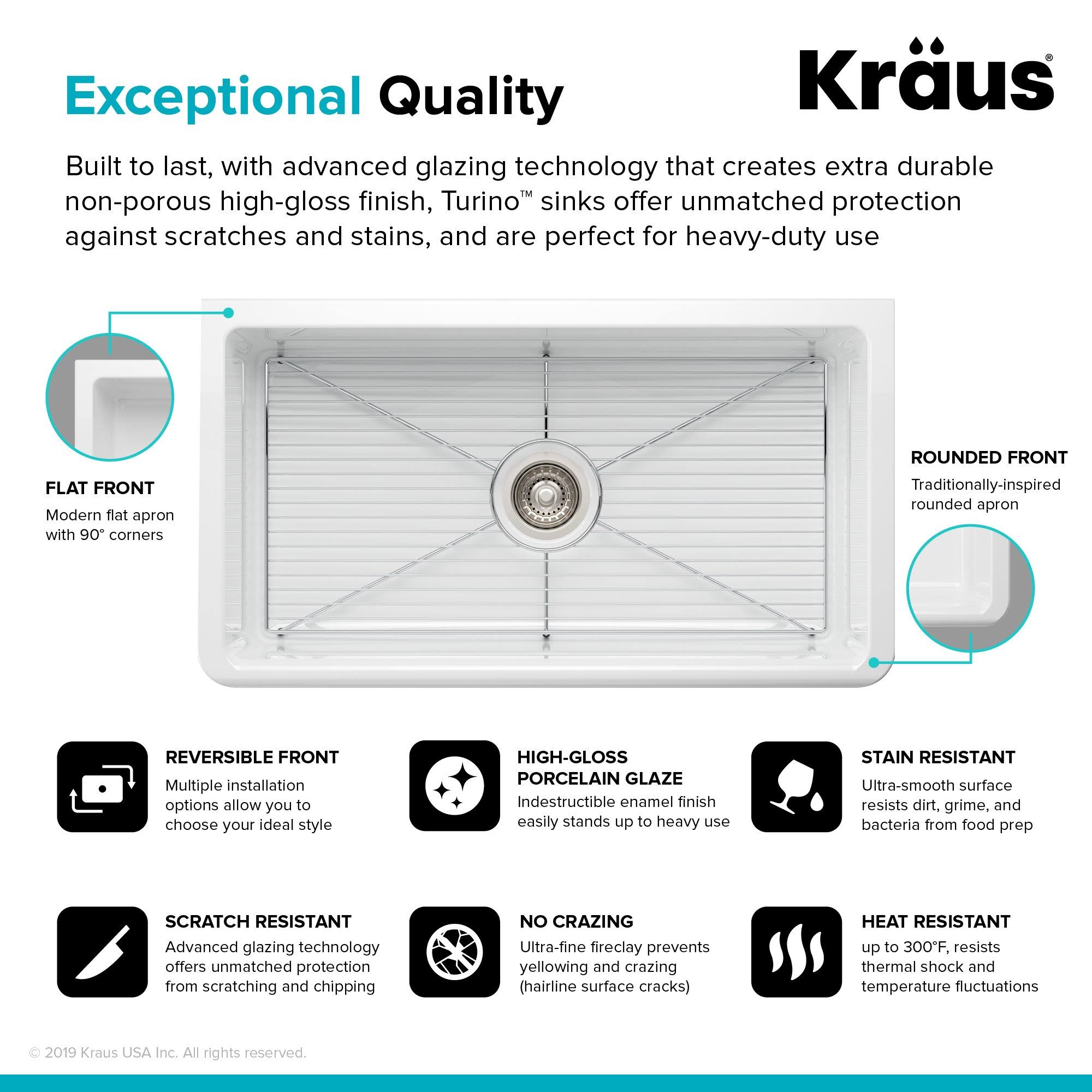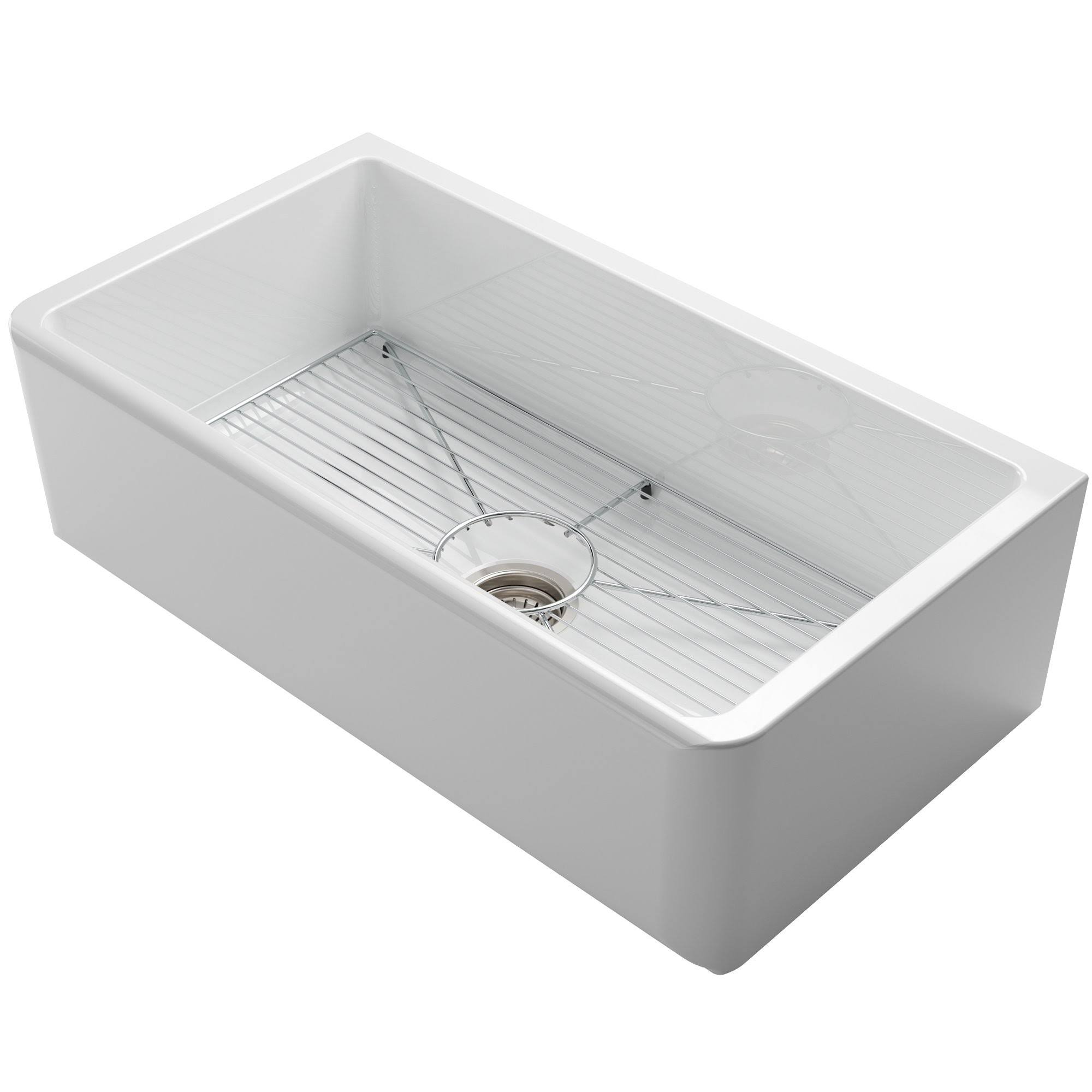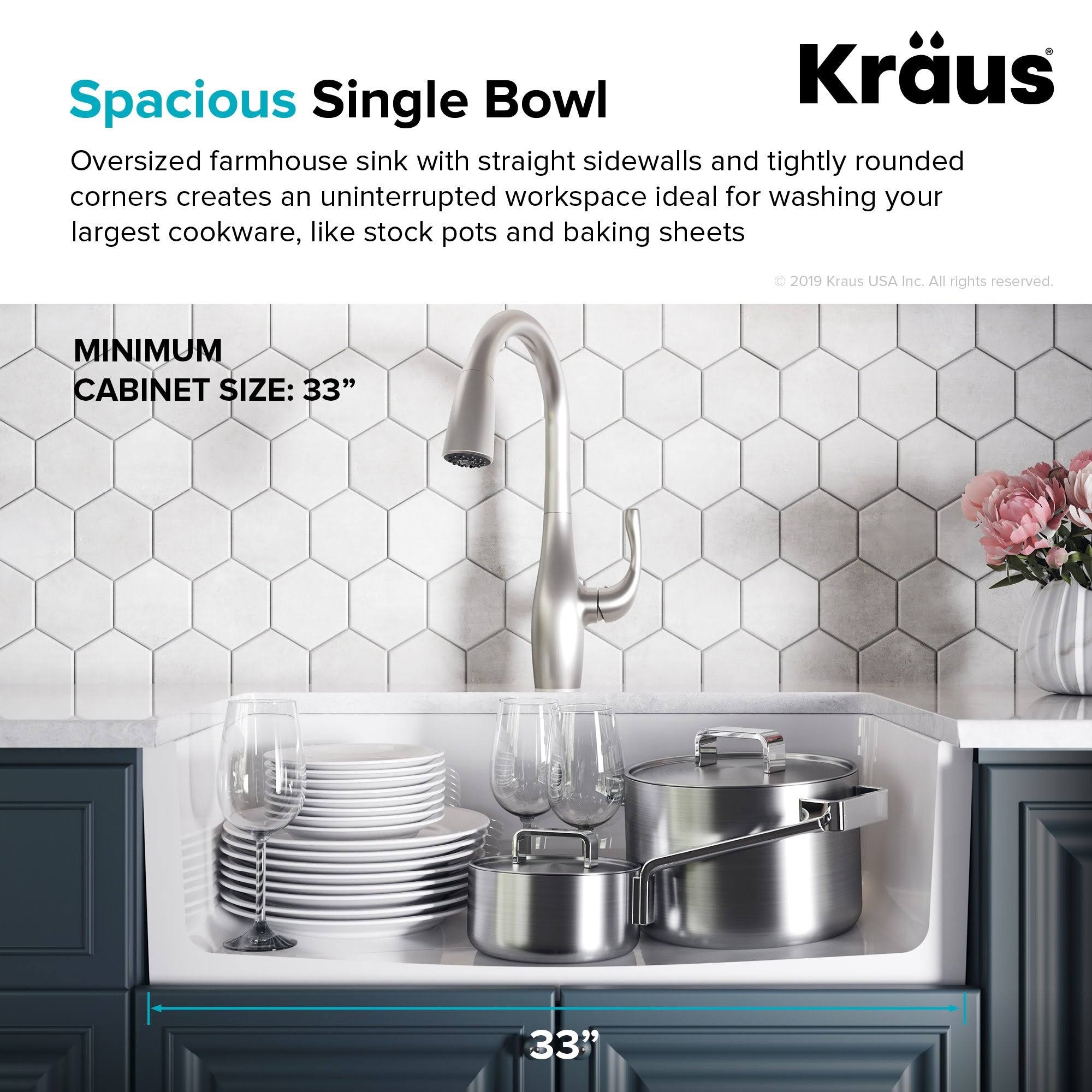Kraus KFR1-33GWH Turino 33 inch Fireclay Farmhouse Reversible Apron Front Single Bowl Kitchen Sink in Gloss White
