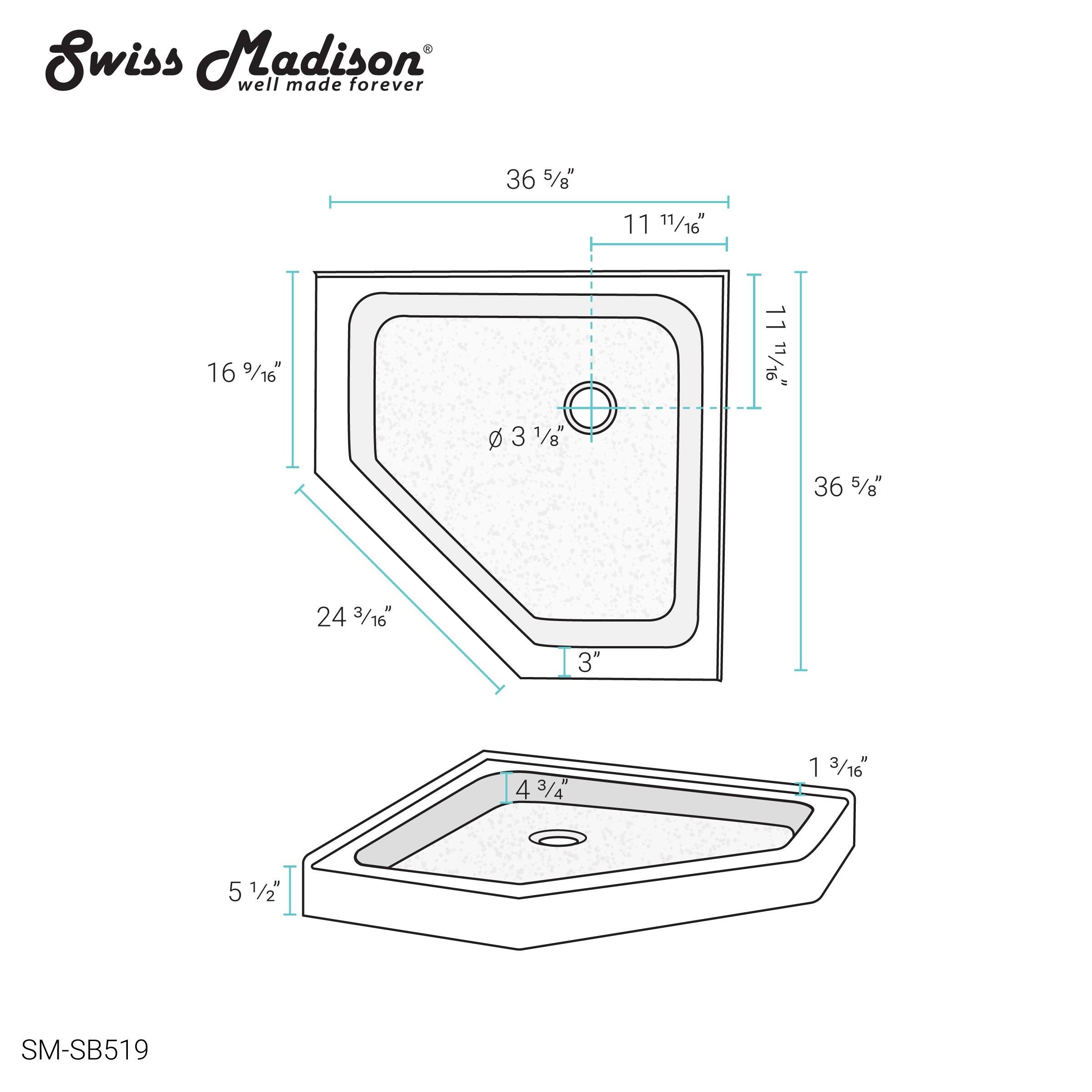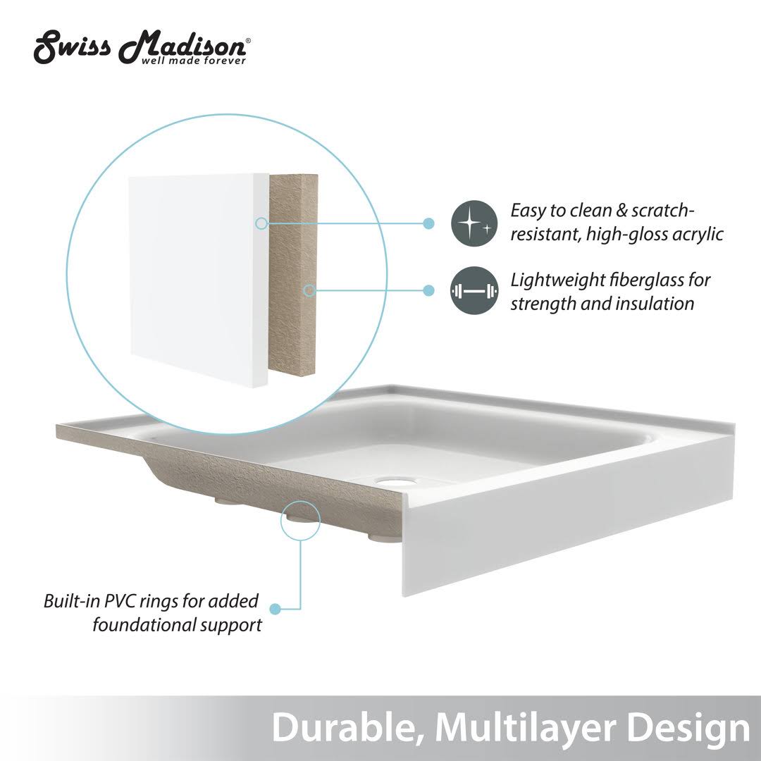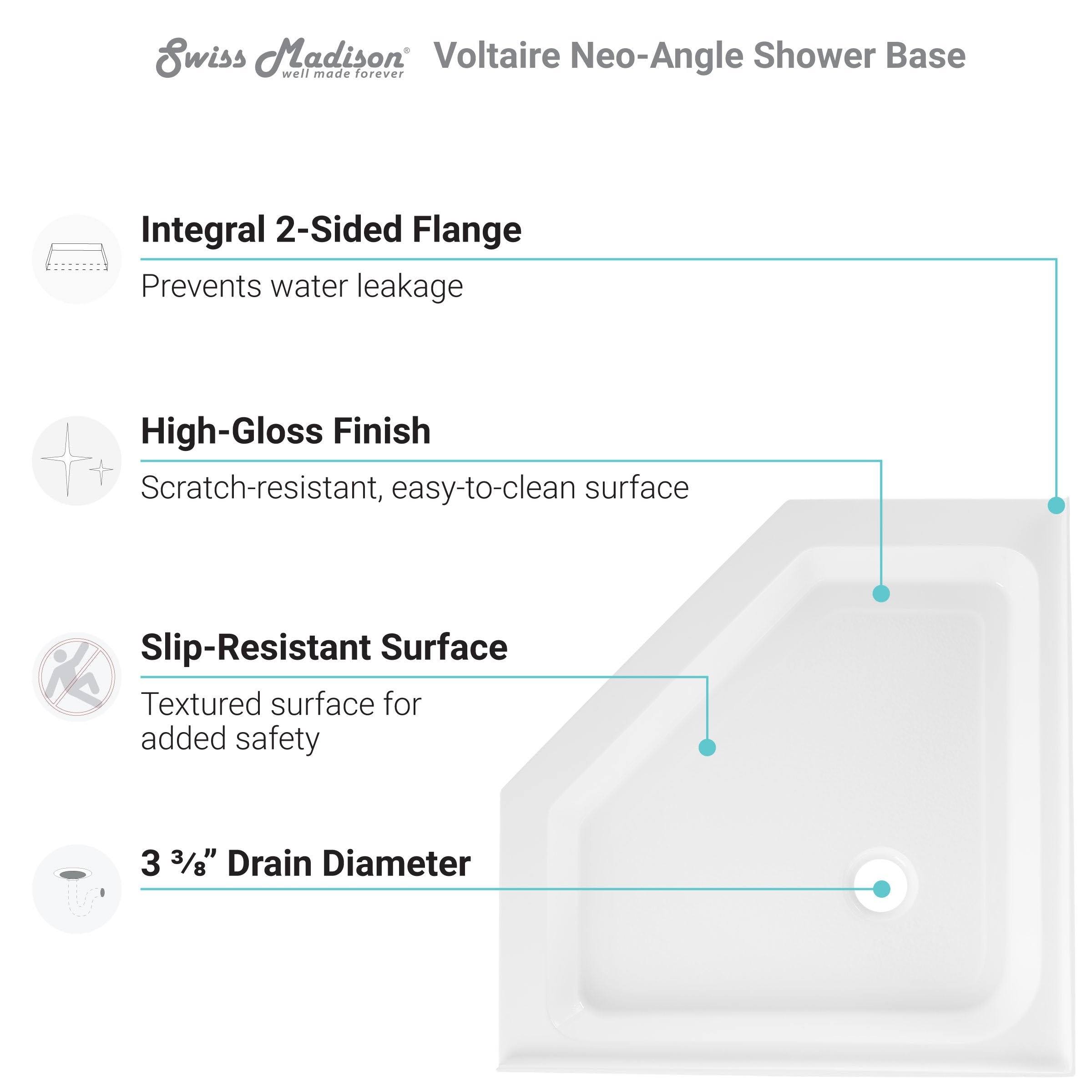 Swiss Madison Voltaire 36 in. x 36 in. Acrylic White, Single-Threshold, Center Drain, Neo-Angle Shower Base, Glossy