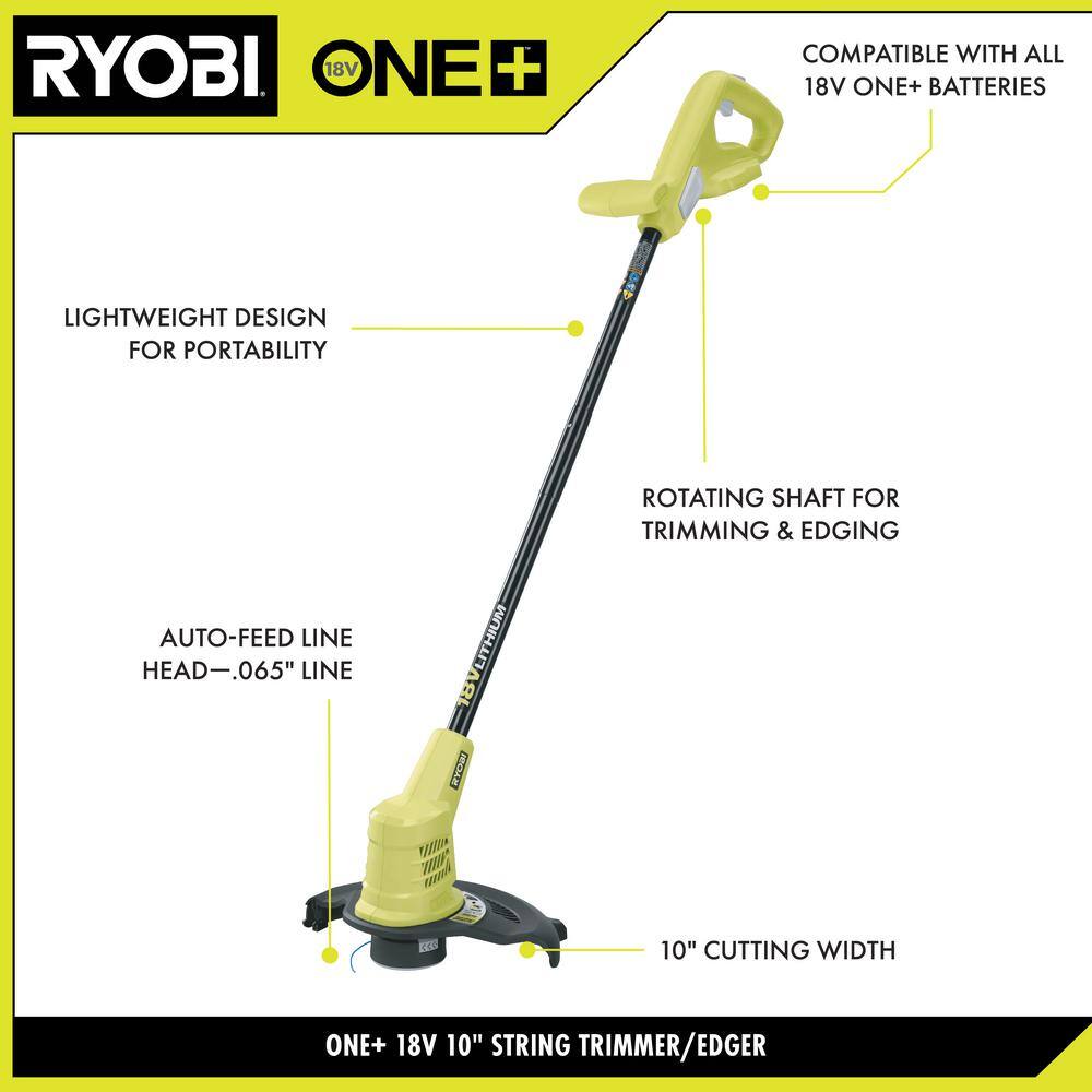 RYOBI P20103BTL-LB ONE+ 18V 10 in. Cordless Battery String Trimmer (Tool Only) with Extra 3-Pack of Spools