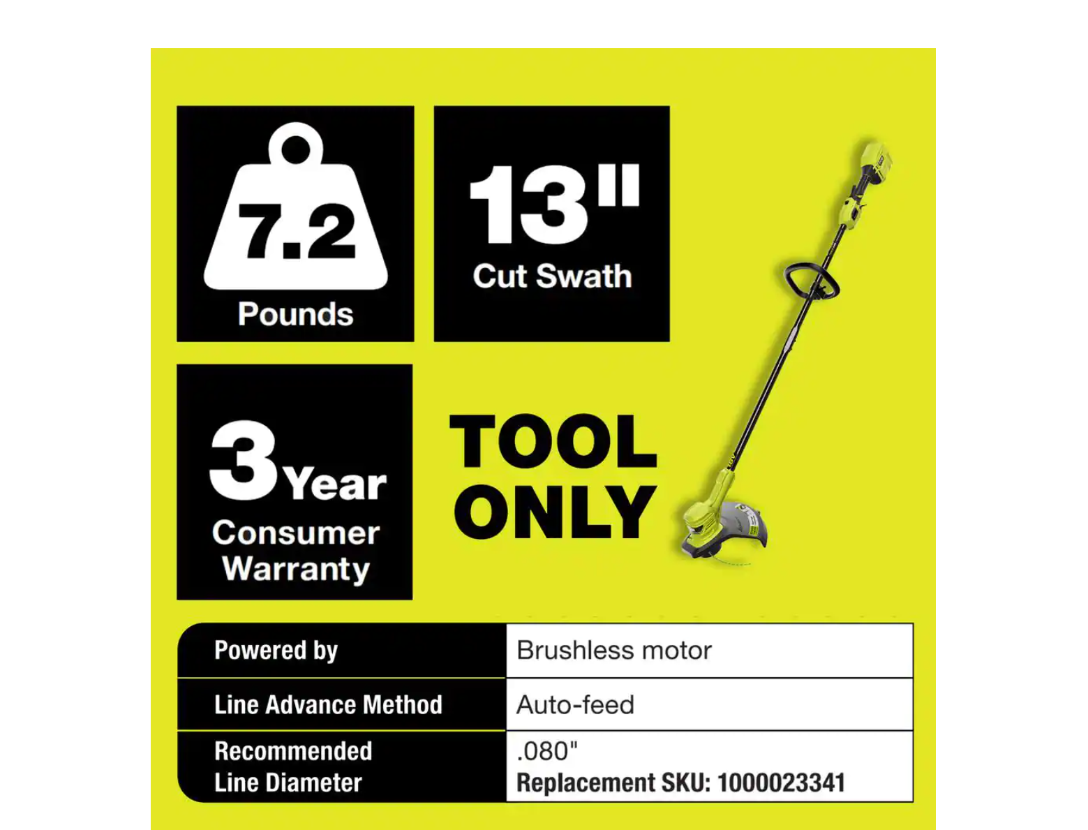 RYOBI P20120VNM ONE+ HP 18V Brushless 13 in. Cordless Battery String Trimmer with 4.0 Ah Battery and Charger