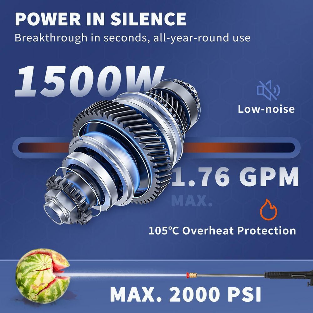 VEVOR DDG176GPM110VU1K3V1 2000 PSI Max. Electric Pressure Washer 1.76 GPM Power Washer with 30 ft. Hose. 5 Quick Connect Nozzles. ETL Listed