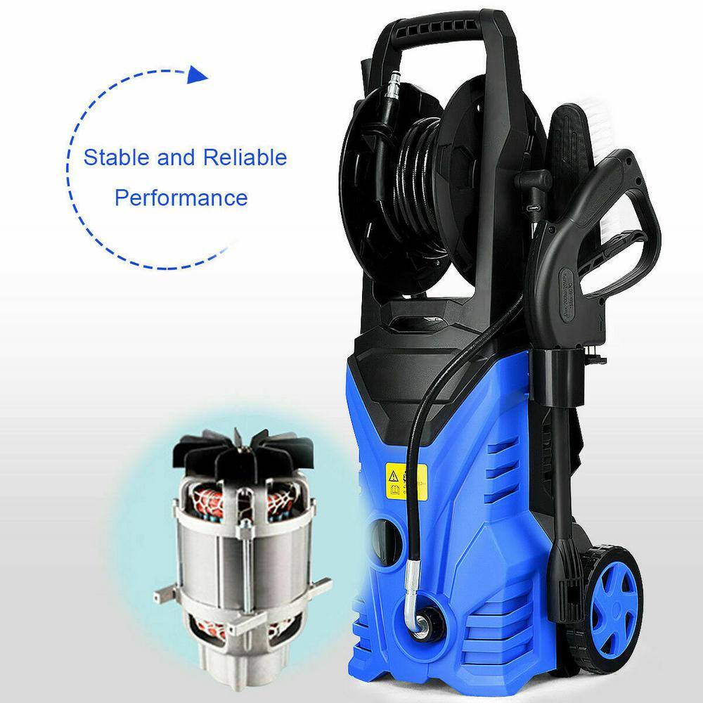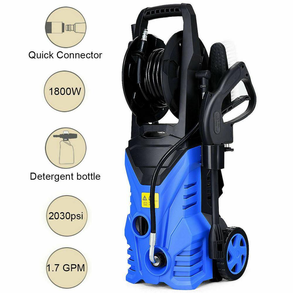 Costway 2030 PSI 1.7 GPM 1800-Watt Electric Pressure Washer Cleaner with Hose Reel in Blue