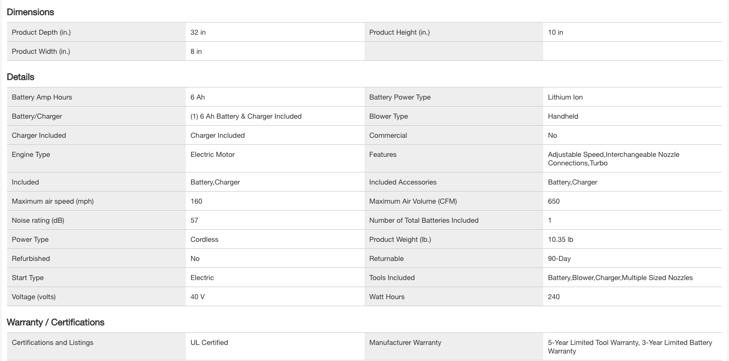 RYOBI RY404130VNM 40V HP Brushless Whisper Series 155 MPH 600 CFM Cordless Battery Leaf Blower with 4.0 Ah Battery and Charger
