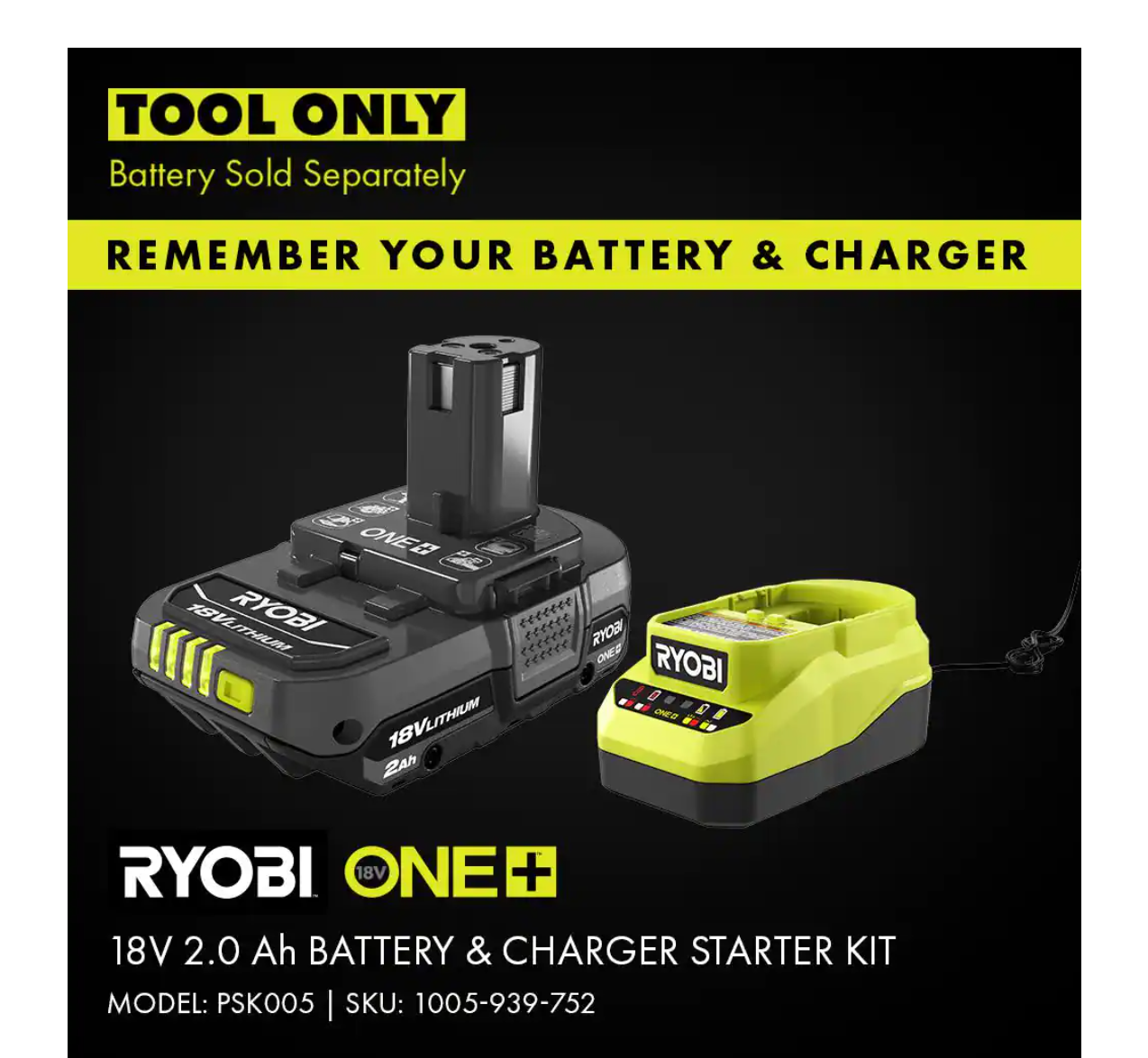 RYOBI PBLRS01B-PSK005 ONE+ HP 18V Brushless Cordless Reciprocating Saw with 2.0 Ah Battery and Charge