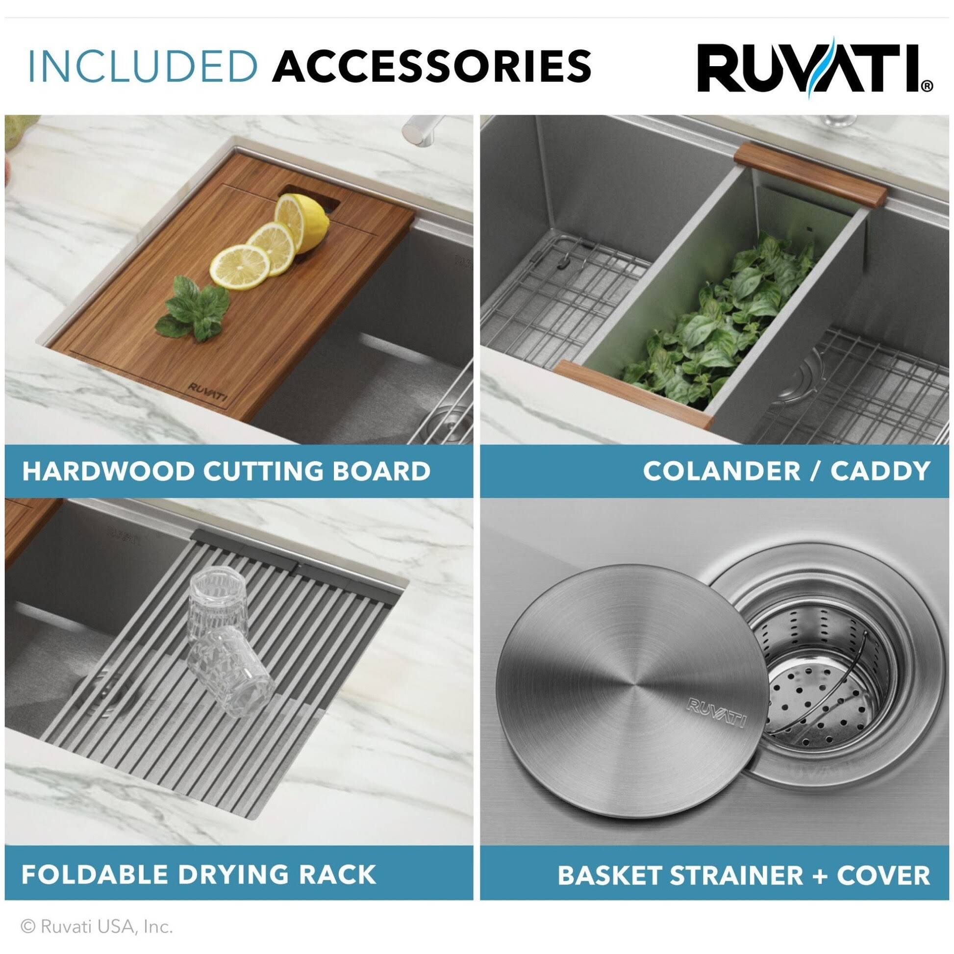 Ruvati 30" Workstation Ledge Undermount 16 Gauge Stainless Steel Kitchen Sink Single Bowl- RVH8310