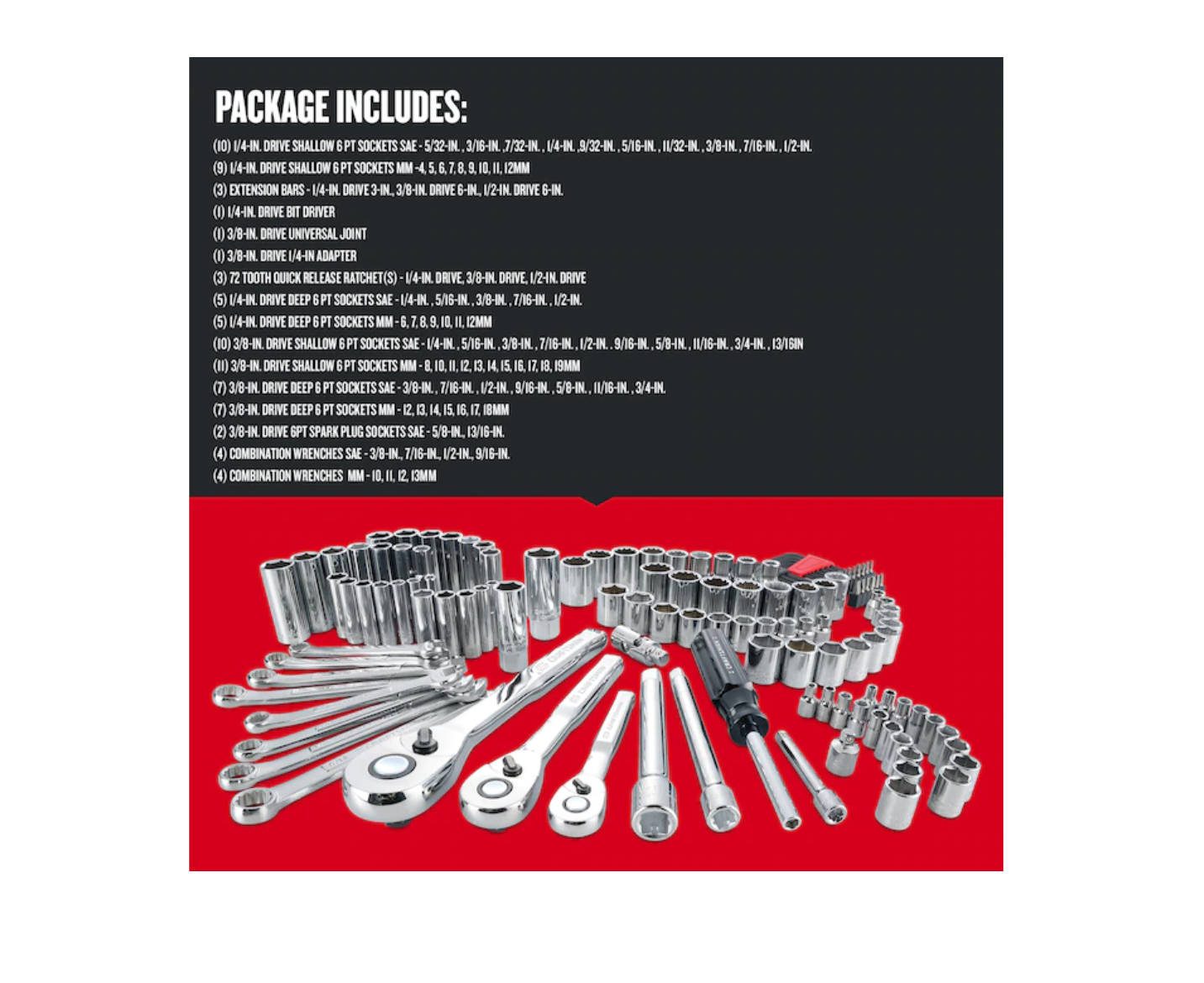 CRAFTSMAN CMMT12024 135-Piece Standard (SAE) and Metric Combination Polished Chrome Mechanics Tool Set (1/4-in; 3/8-in; 1/2-in;)