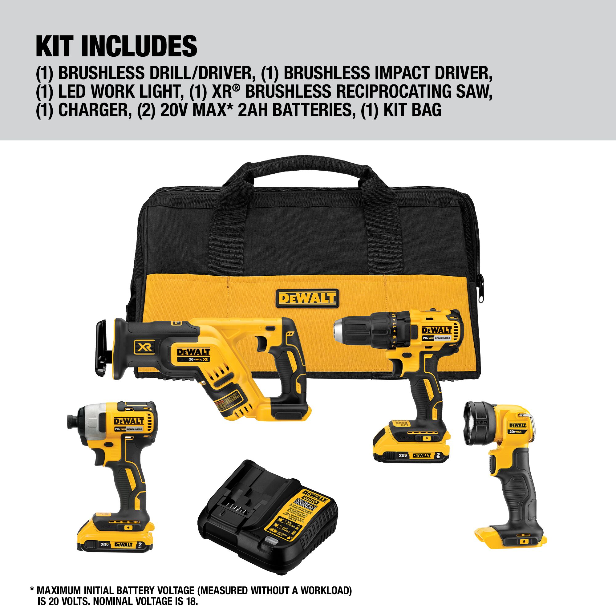 DEWALT 4-Tool 20-Volt Max Brushless Power Tool Combo Kit with Soft Case (2-Batteries and charger Included)