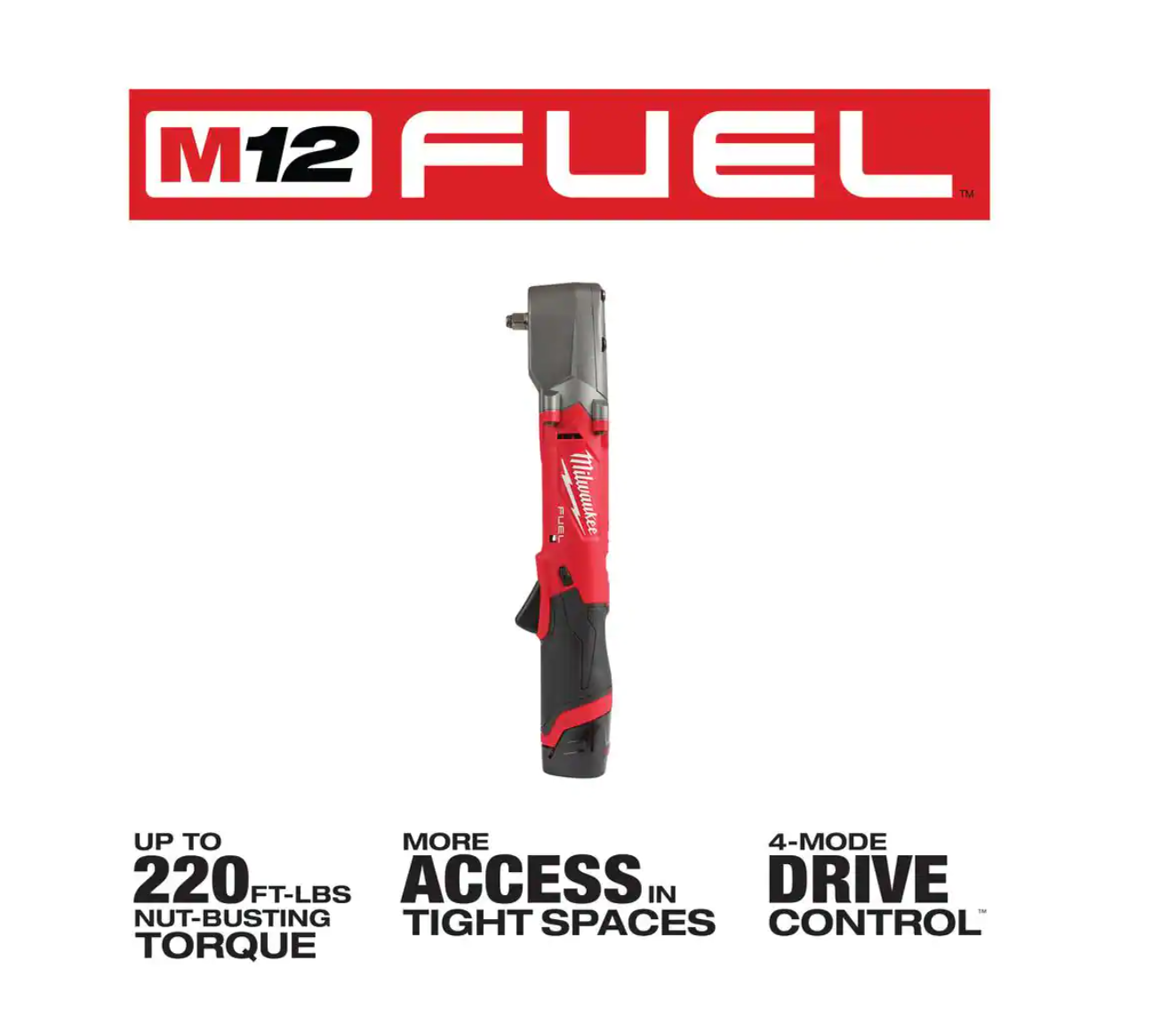 Milwaukee 2564-22 M12 FUEL 12V Lithium-Ion Brushless Cordless 3/8 in. Right Angle Impact Wrench Kit with Two 2.0 Ah Batteries