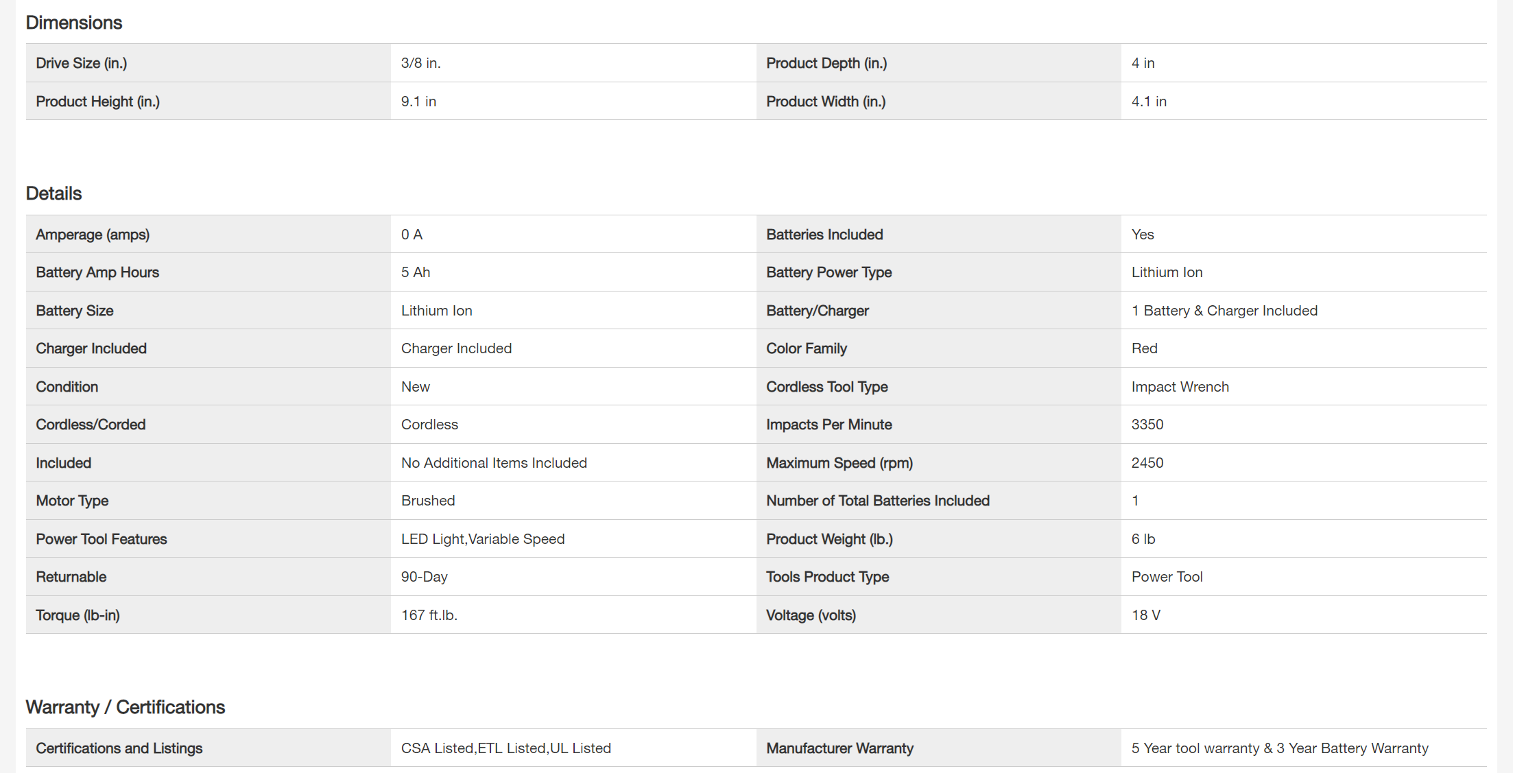 Milwaukee 2658-20-48-59-1850 M18 18V Lithium-Ion Cordless 3/8 in. Impact Wrench W/ Friction Ring W/ M18 Starter Kit (1) 5.0Ah Battery & Charger