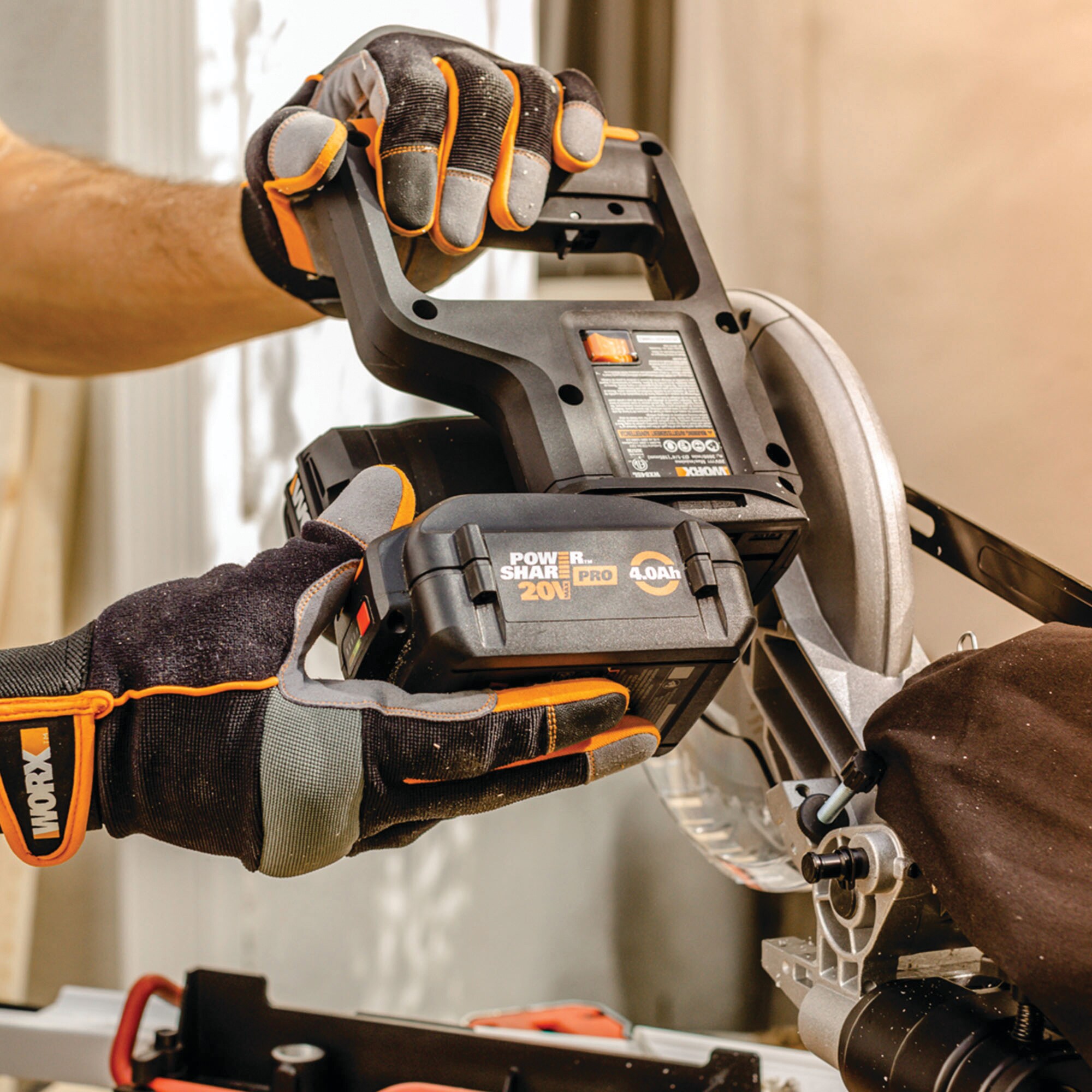 WORX Power Share POWER SHARE 7-1/4-in 20-volt Max Single Bevel Sliding Compound Cordless Miter Saw (Cordless)