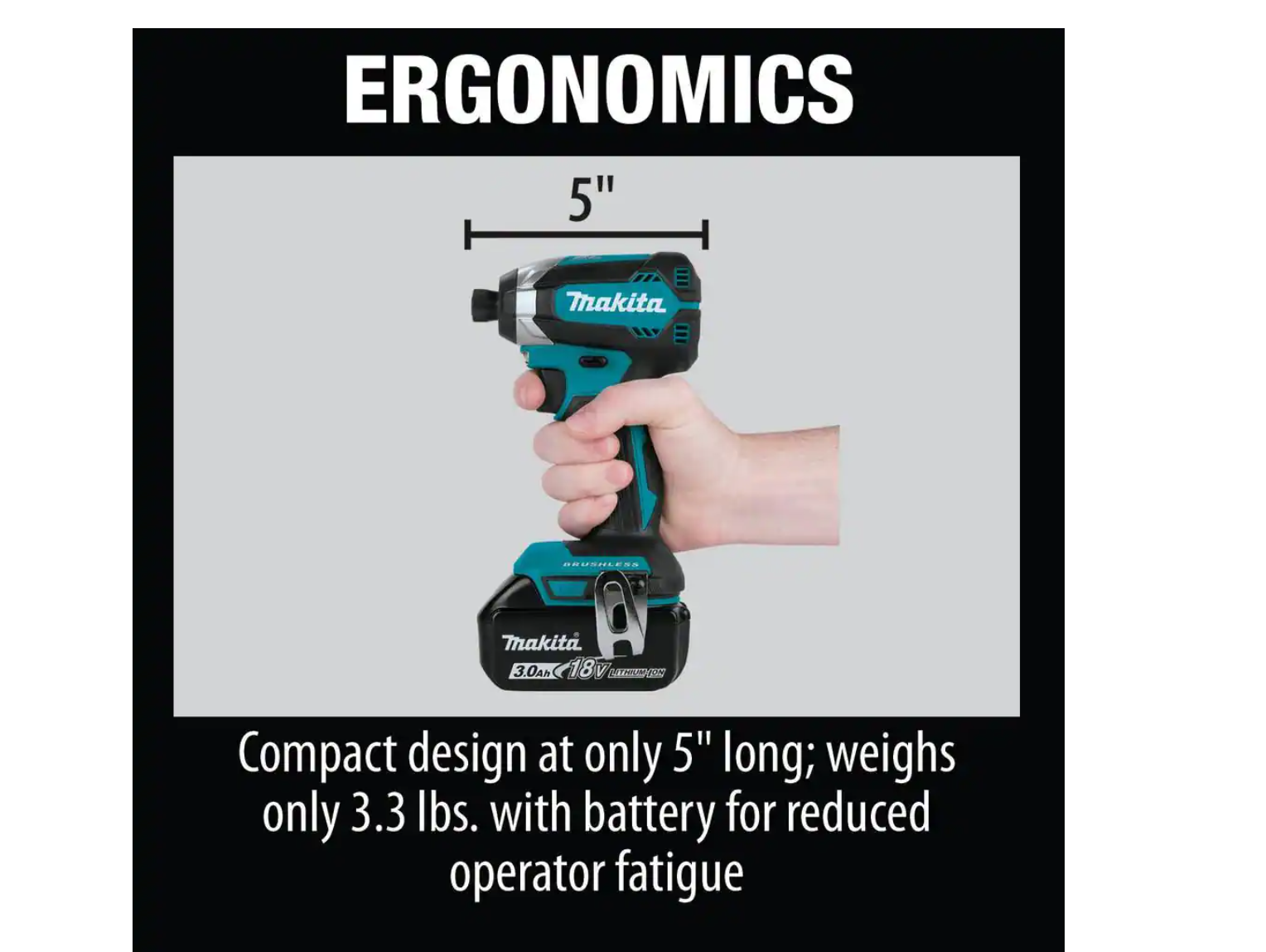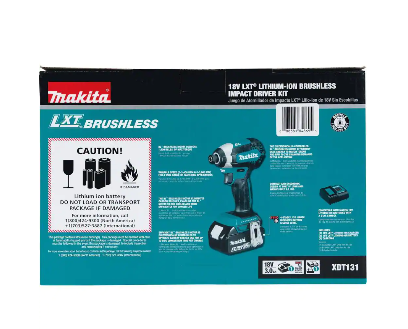 Makita XDT131 18V LXT Lithium-Ion Brushless Cordless Impact Driver Kit with (1) Battery 3.0Ah And Charger