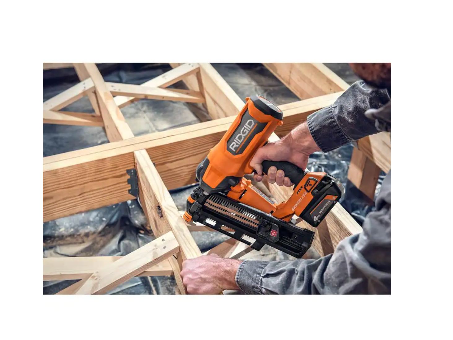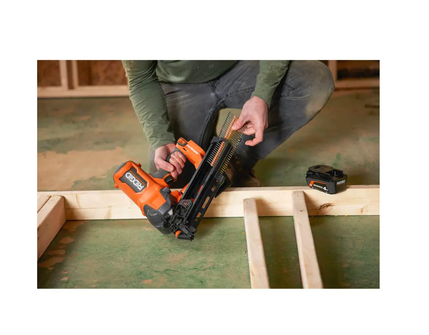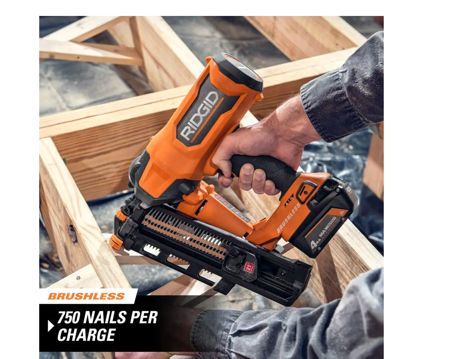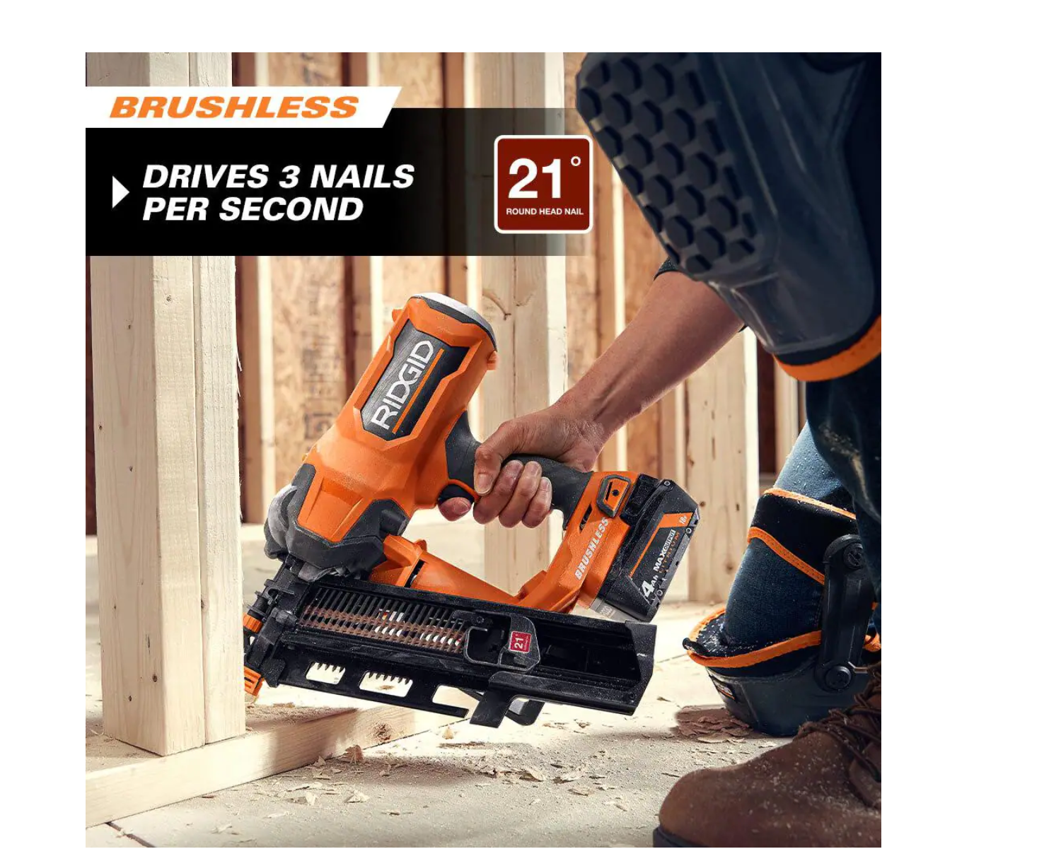 RIDGID R09894B-AC87004 18V Lithium-Ion Brushless Cordless 21° 3-1/2 in. Framing Nailer with 18V Lithium-Ion 4.0 Ah Battery