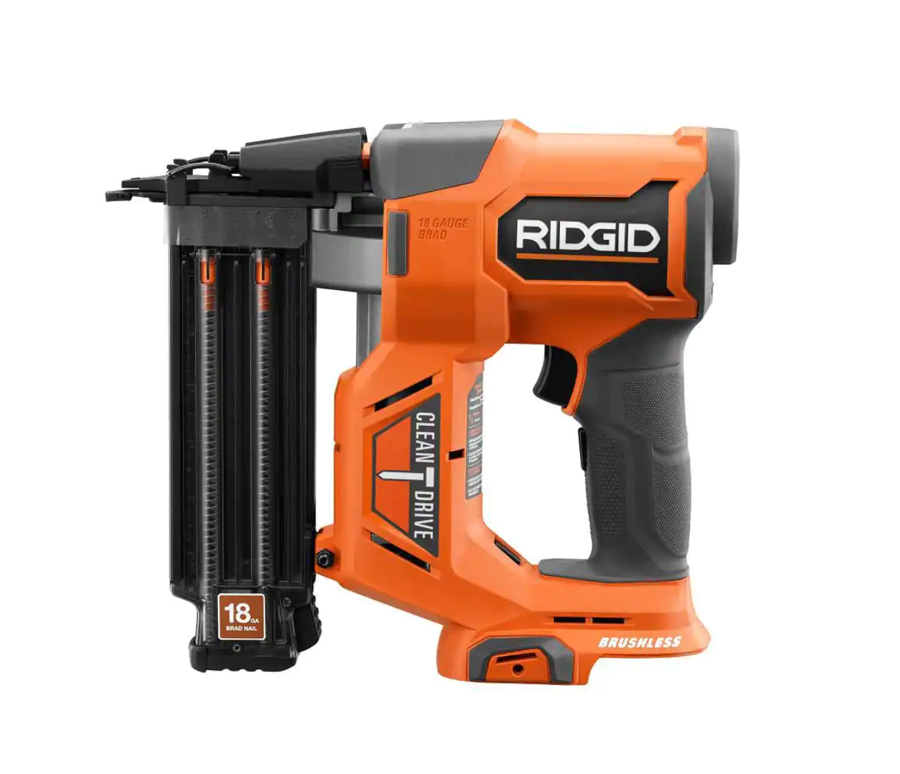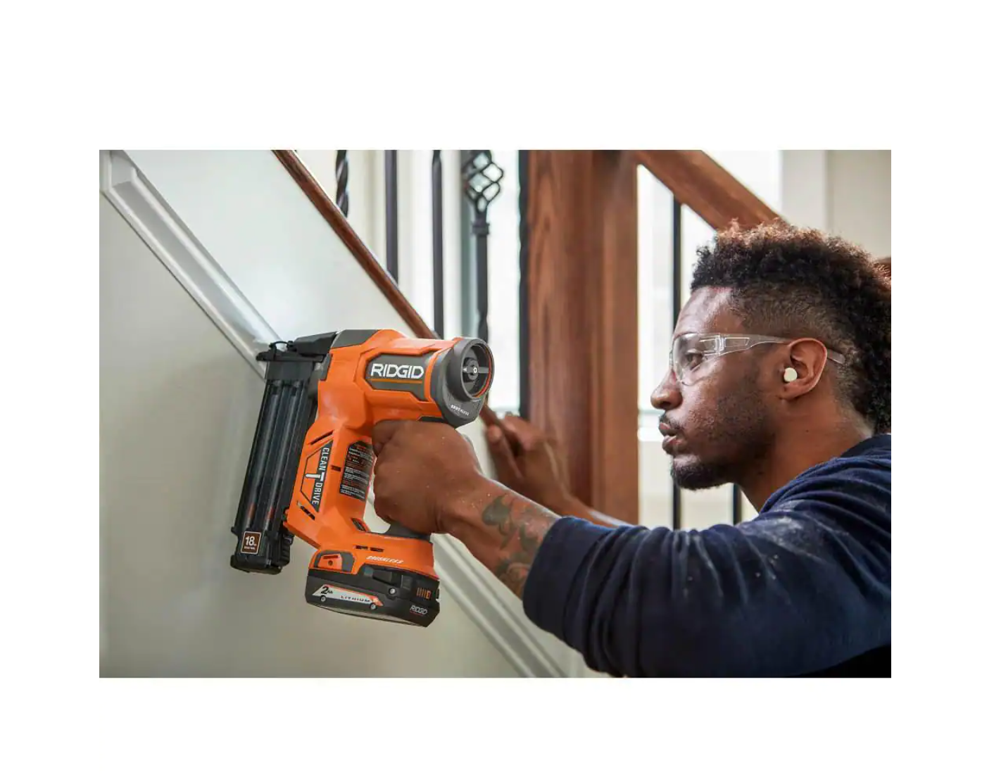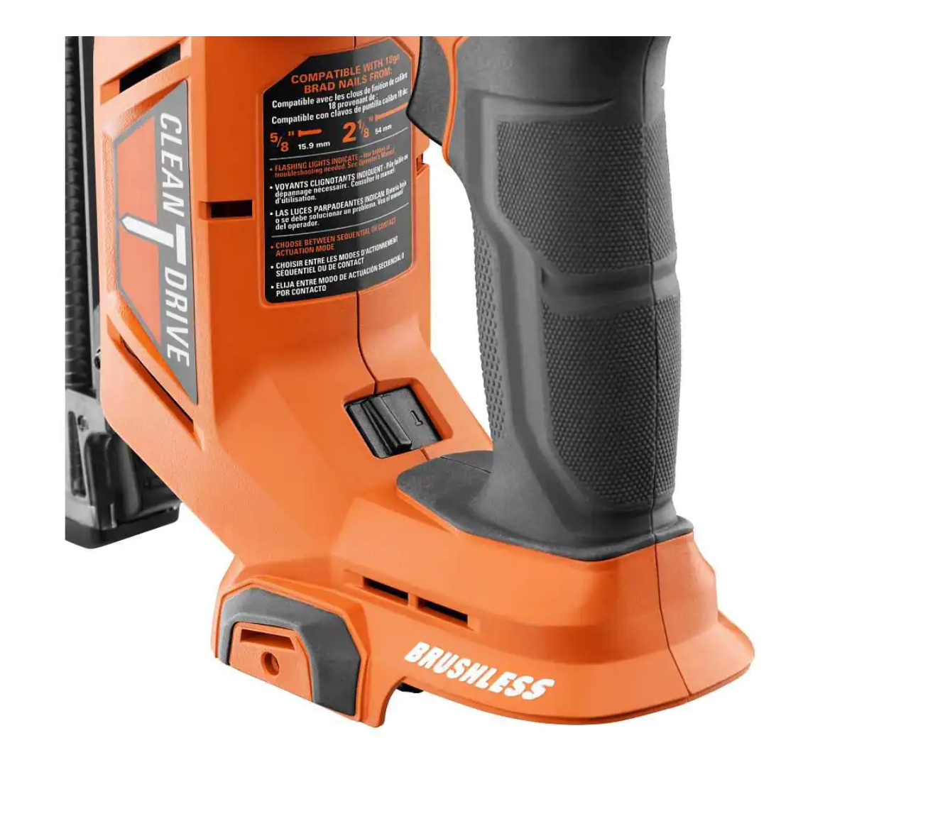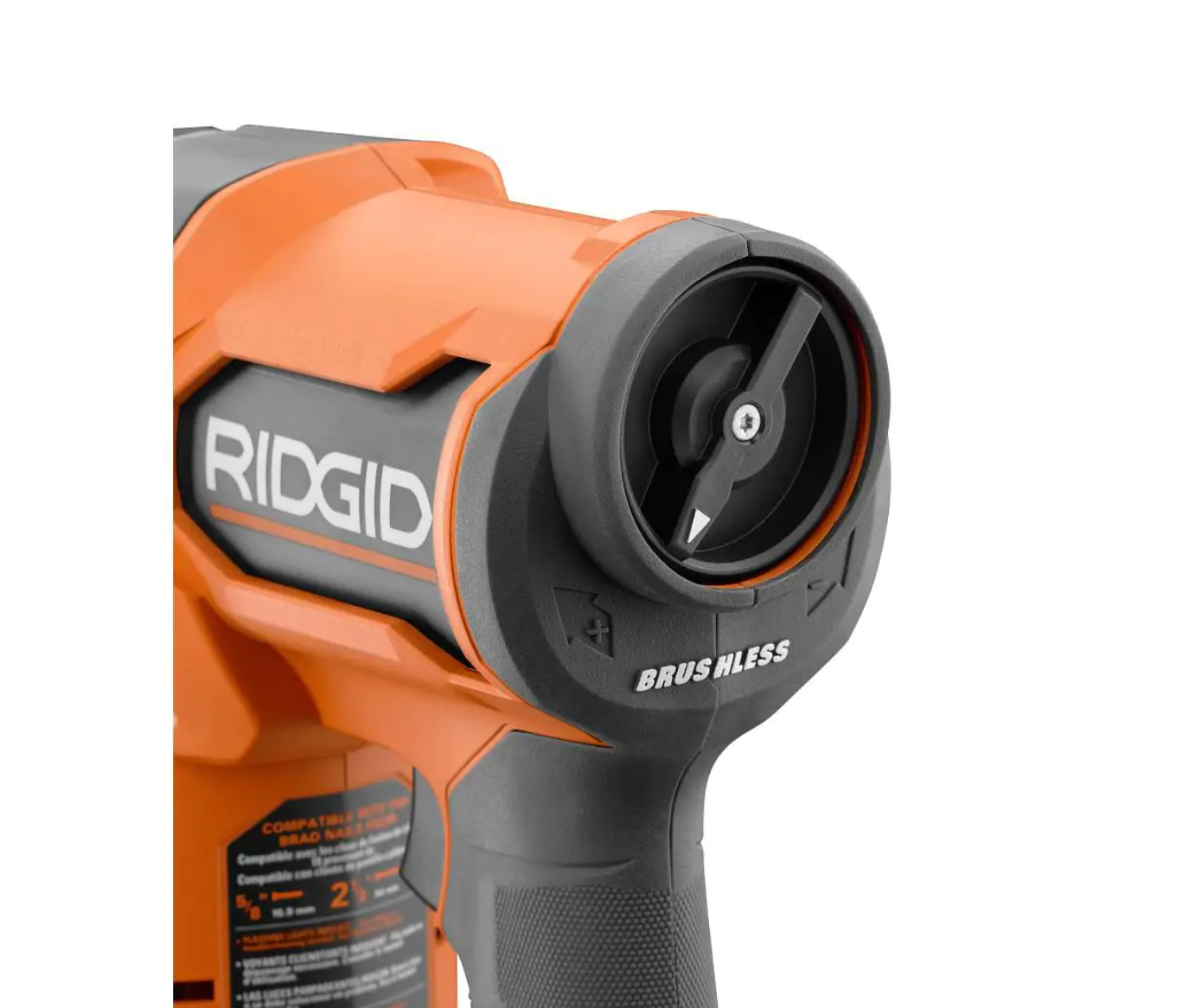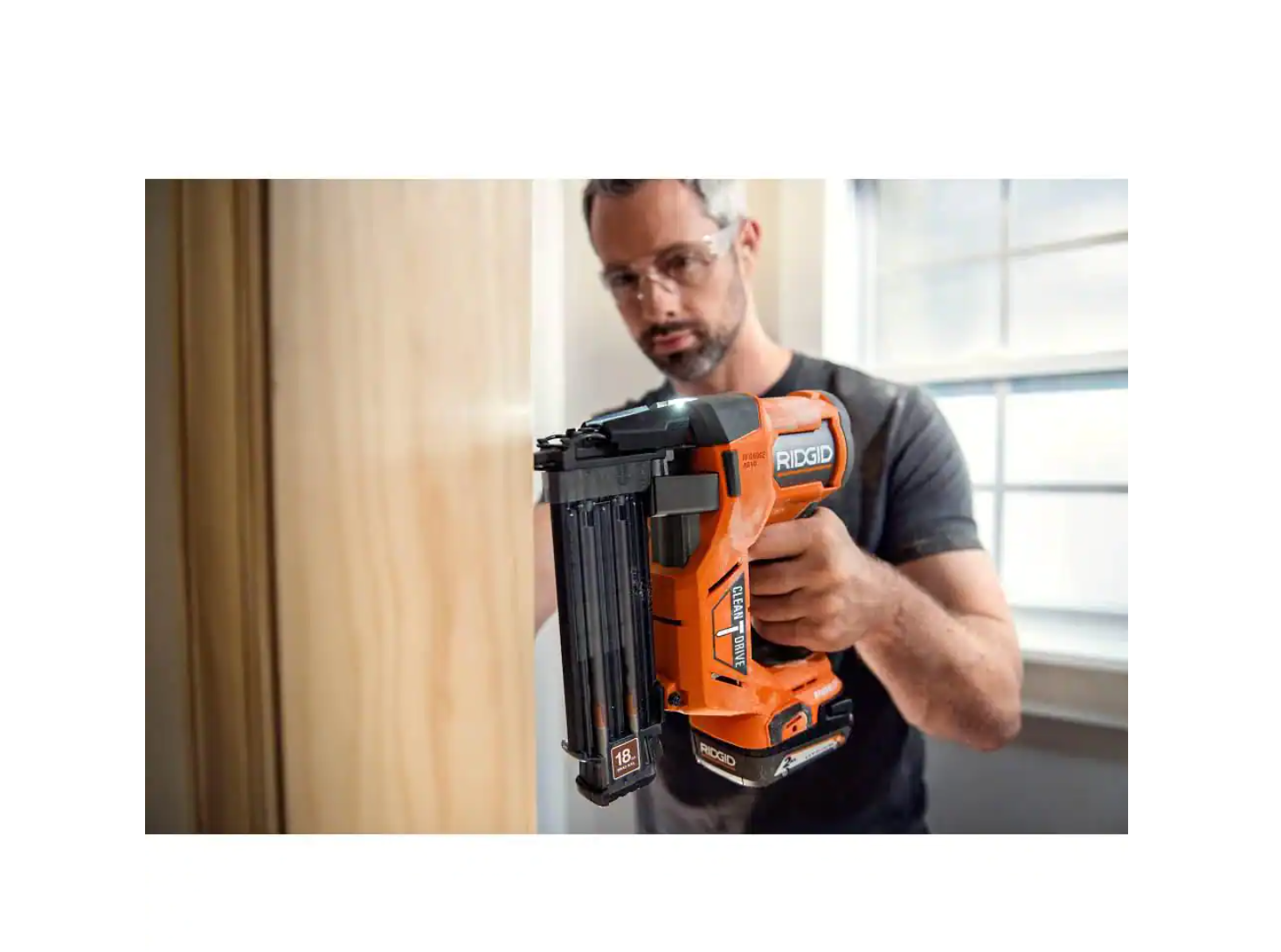RIDGID R09891K 18V Brushless Cordless 18-Gauge 2-1/8 in. Brad Nailer with CLEAN DRIVE Technology with 2.0 Ah Battery and Charger