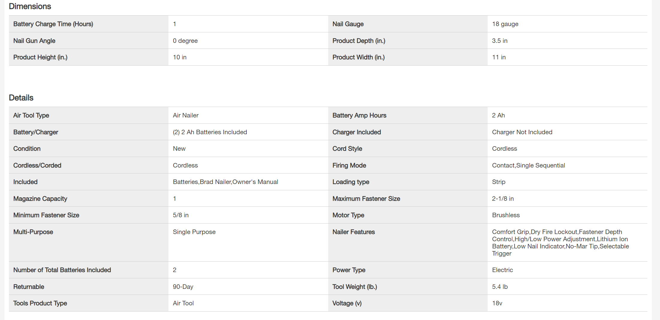 RIDGID R09891B-AC840020PN 18V Brushless Cordless 18-Gauge 2-1/8 in. Brad Nailer with (2) MAX Output 2.0 Ah Batteries