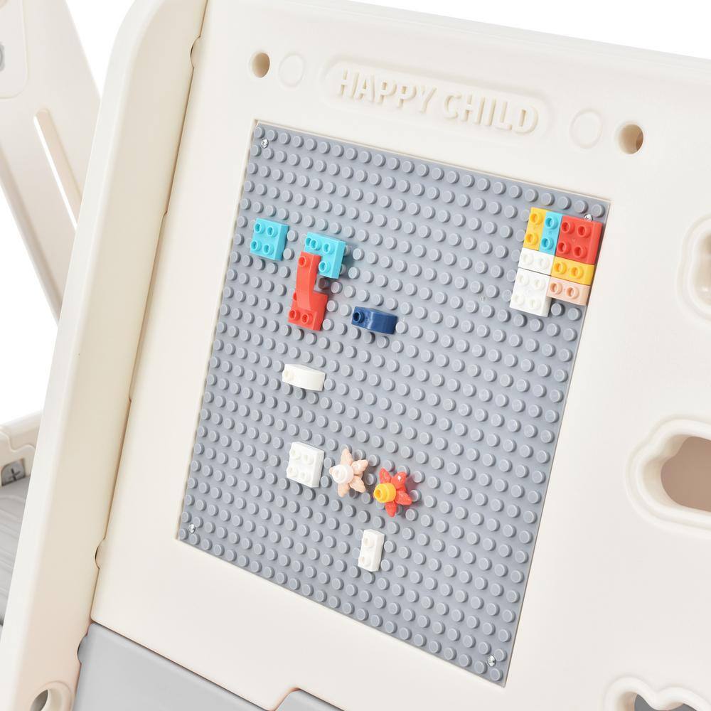 Unbranded LN20232358 6-in-1 Gray HDPE Playset with Tunnel. Climber. Whiteboard. Toy Building Block Baseplates. Basketball Hoop