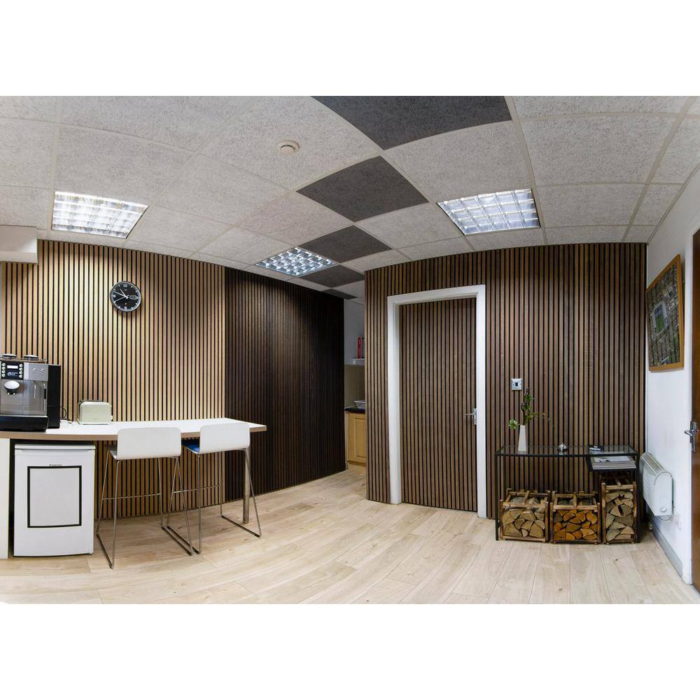 Ejoy VinylCladding_ACP_020_94x24 94 in. x 23.6 in x 0.8 in. Acoustic Vinyl Wall Cladding Siding Board in American Oak Color (Set of 1-Piece)