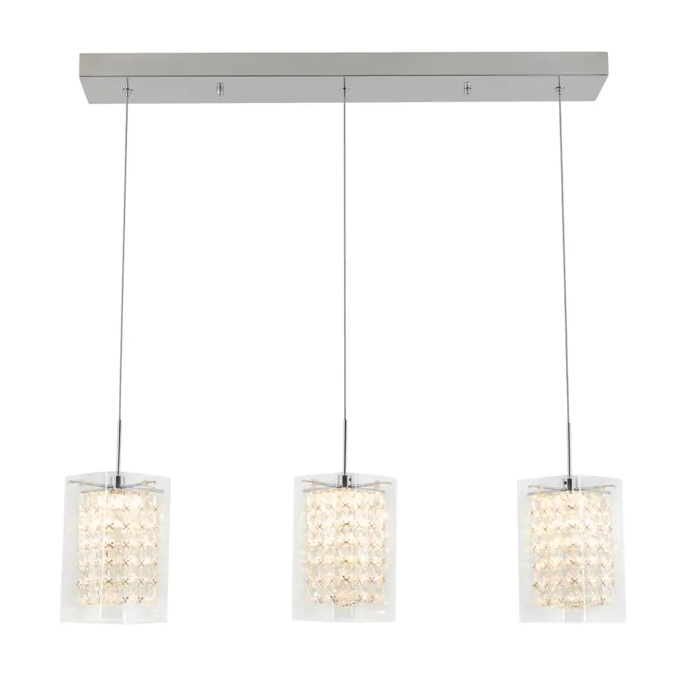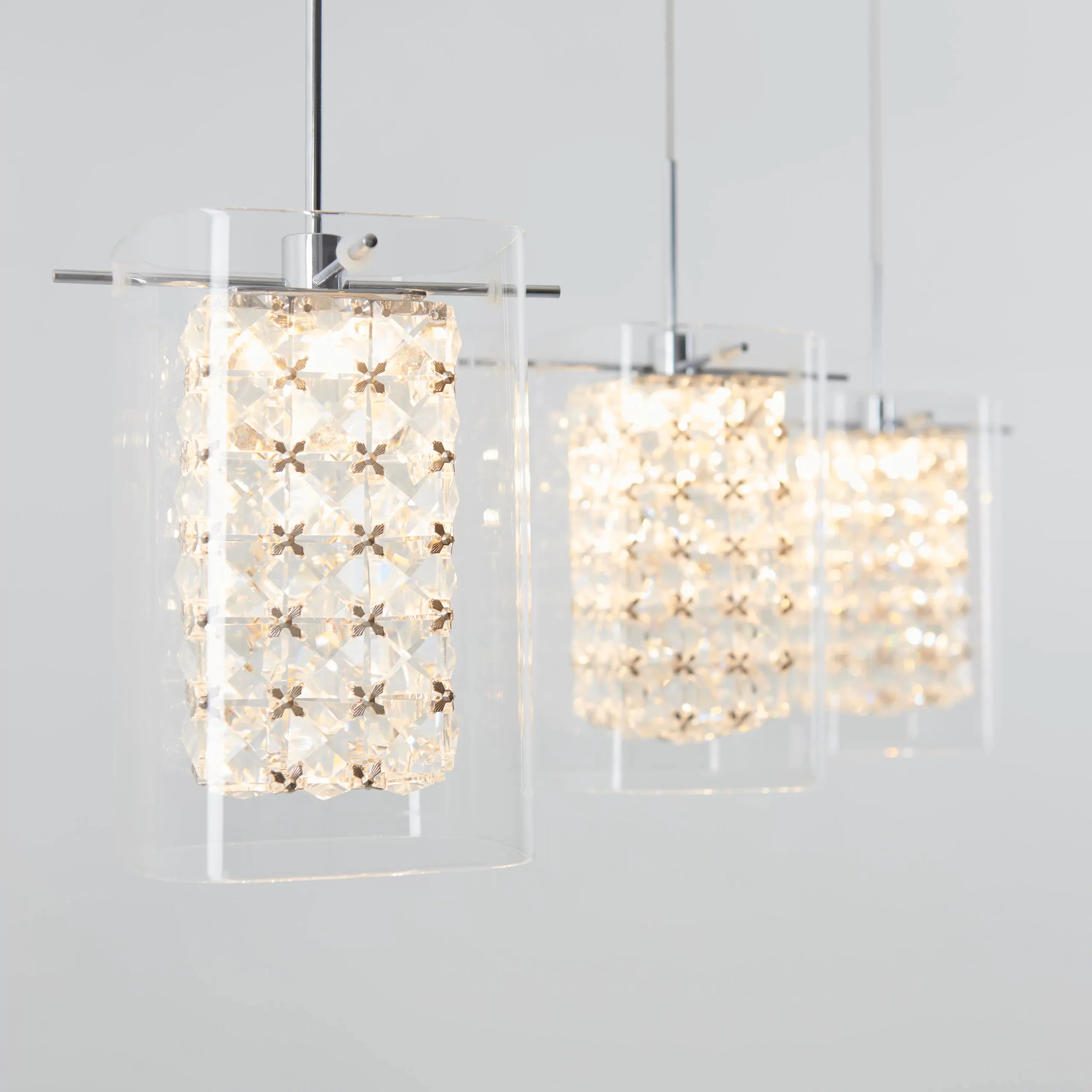 Artika Crystal Cube 13-Watt Modern Integrated LED 3-Light Chrome Hanging Pendant Light with Glass Shade for Dining Room
