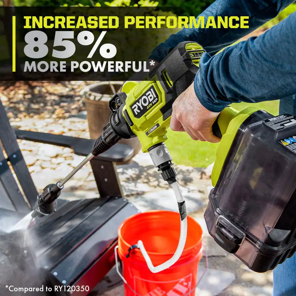RYOBI RY124052KVNM 40-Volt HP Brushless EZClean 600 PSI 0.7 GPM Cold Water Power Cleaner with 2.0 Ah Battery and Charger