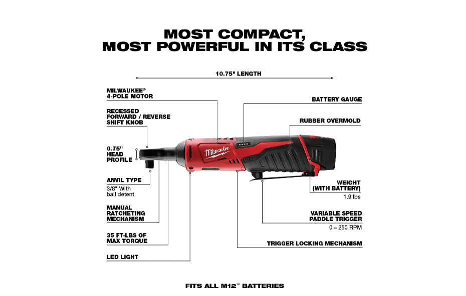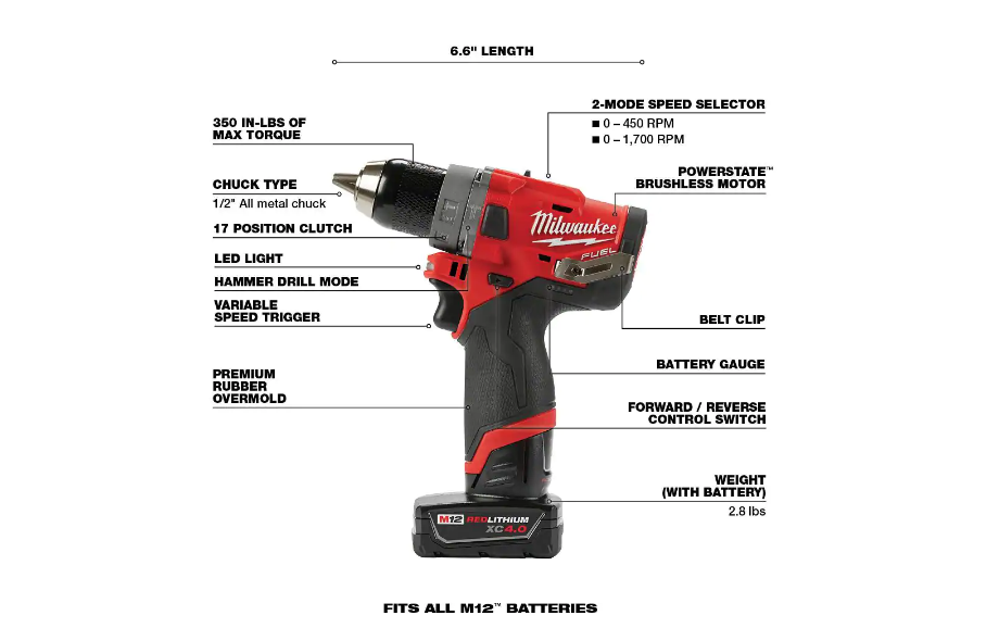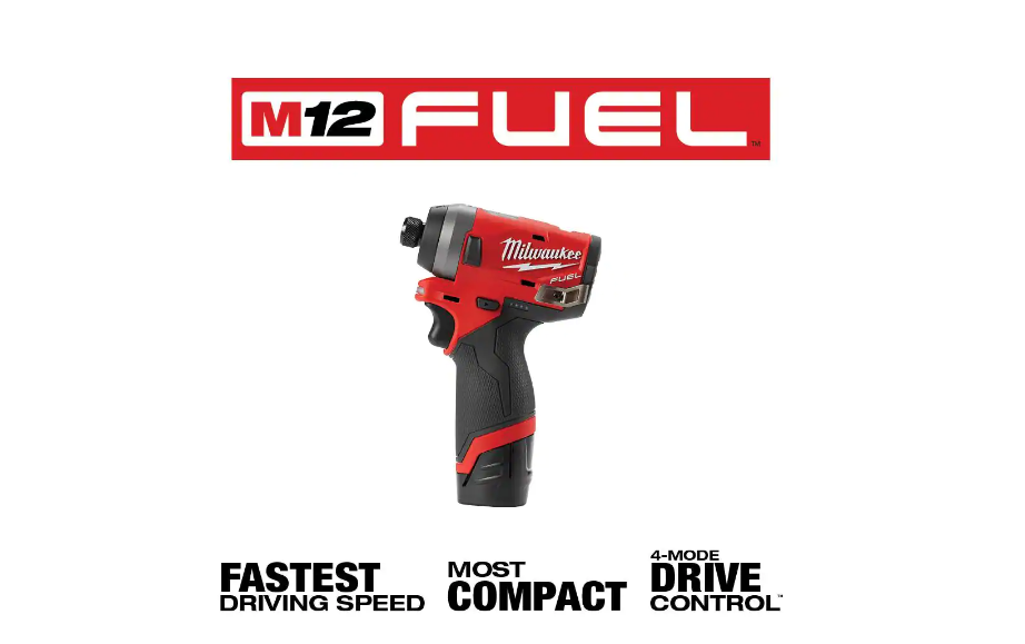 Milwaukee 2598-22 M12 FUEL 12-Volt Li-Ion Brushless Cordless Hammer Drill and Impact Driver Combo Kit (2-Tool)w/ M12 3/8 in. Ratchet