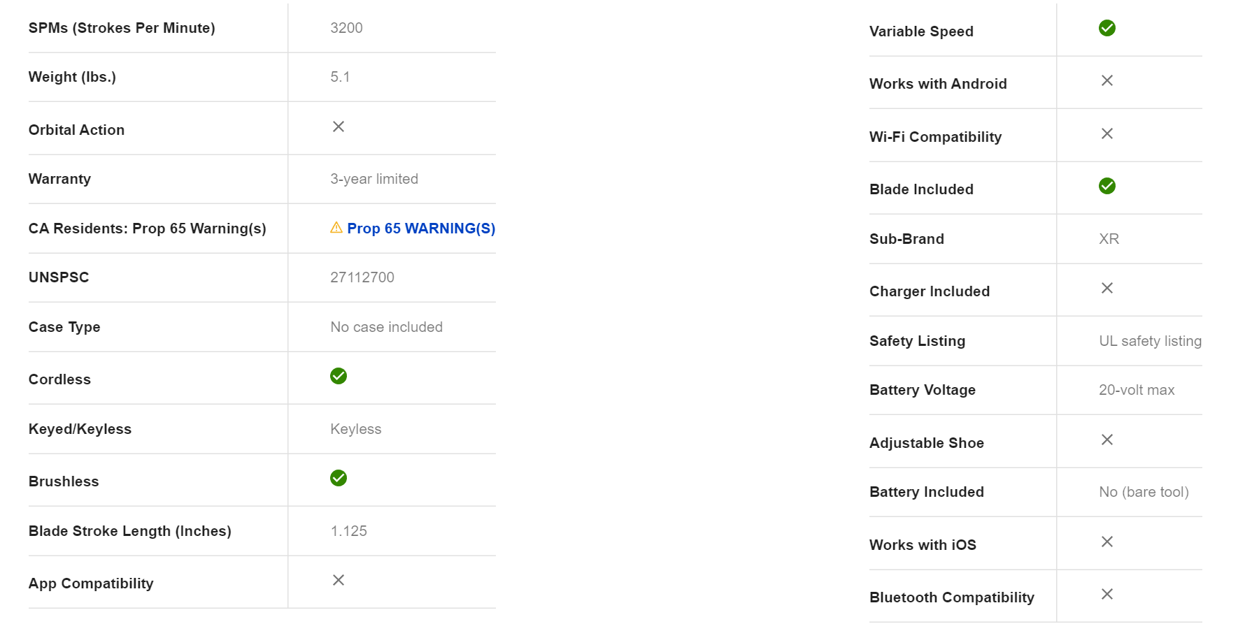 DEWALT Reciprocating Saw DCS382B XR 20-volt Max Variable Speed Brushless Cordless (Tool Only)