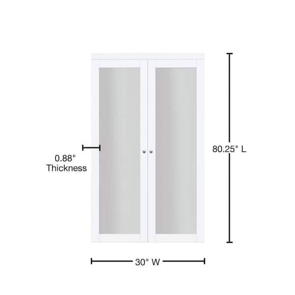 Renin 30 in. x 80.25 in. Off White 1-Lite Tempered Frosted Glass MDF Interior French Door