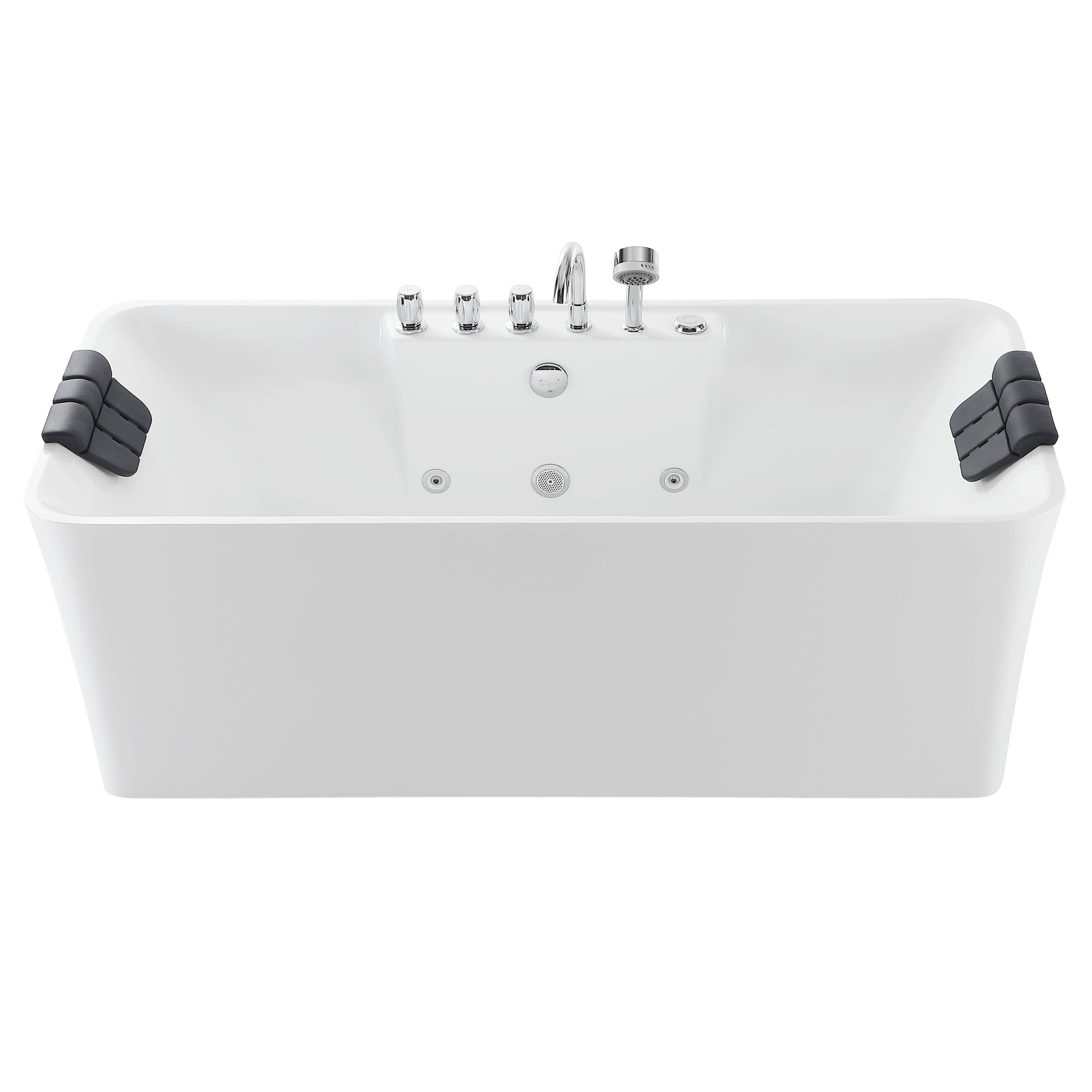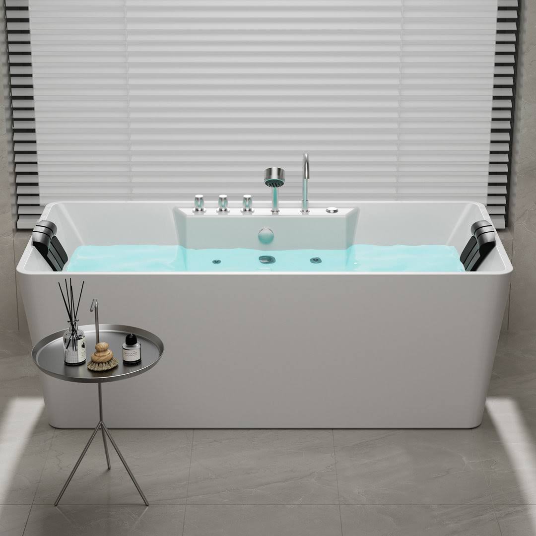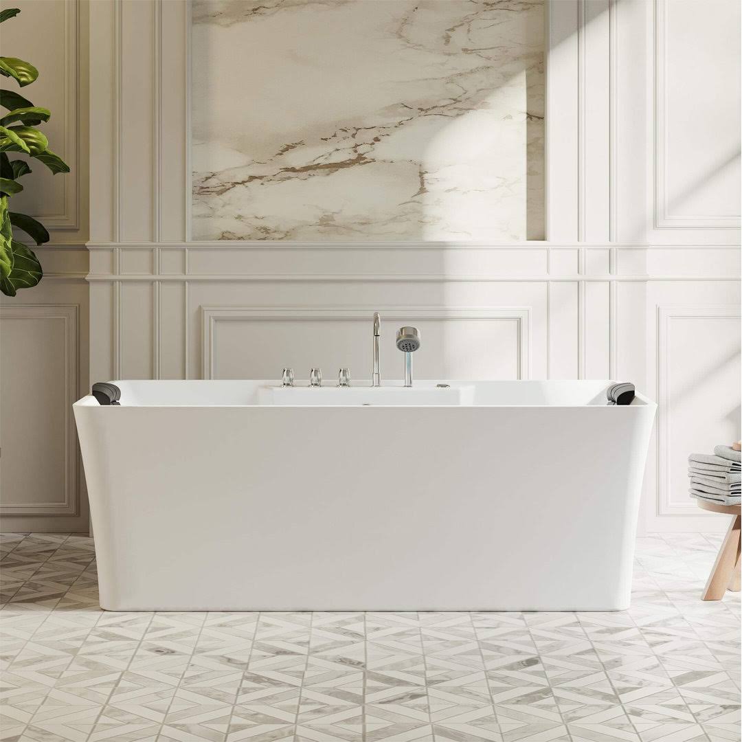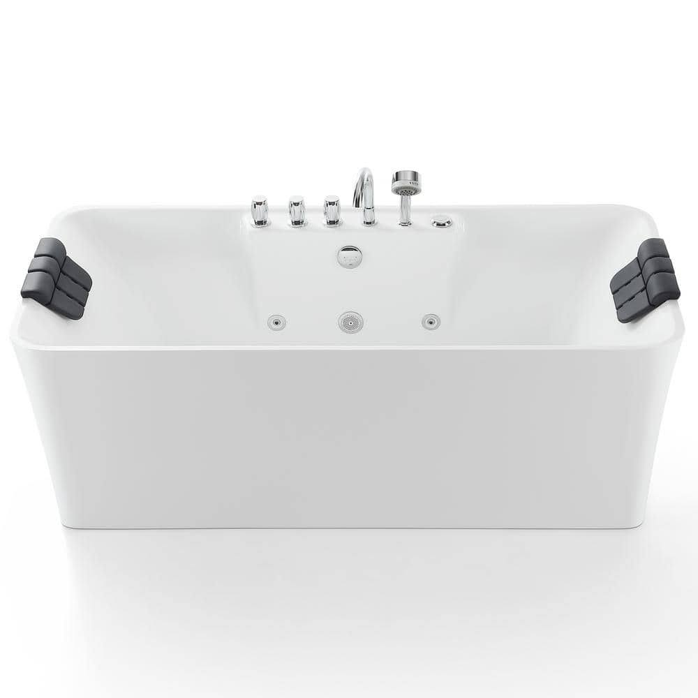 Empava 59 in. Center Drain Acrylic Freestanding Flatbottom Whirlpool Bathtub in White with Faucet- Water Jets
