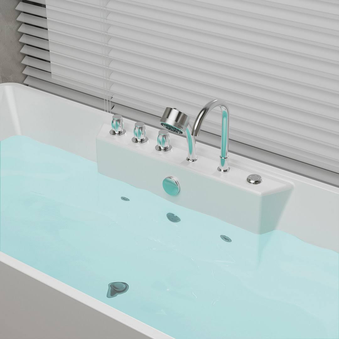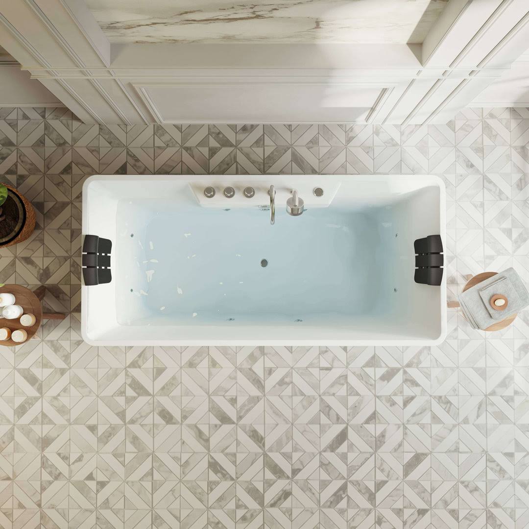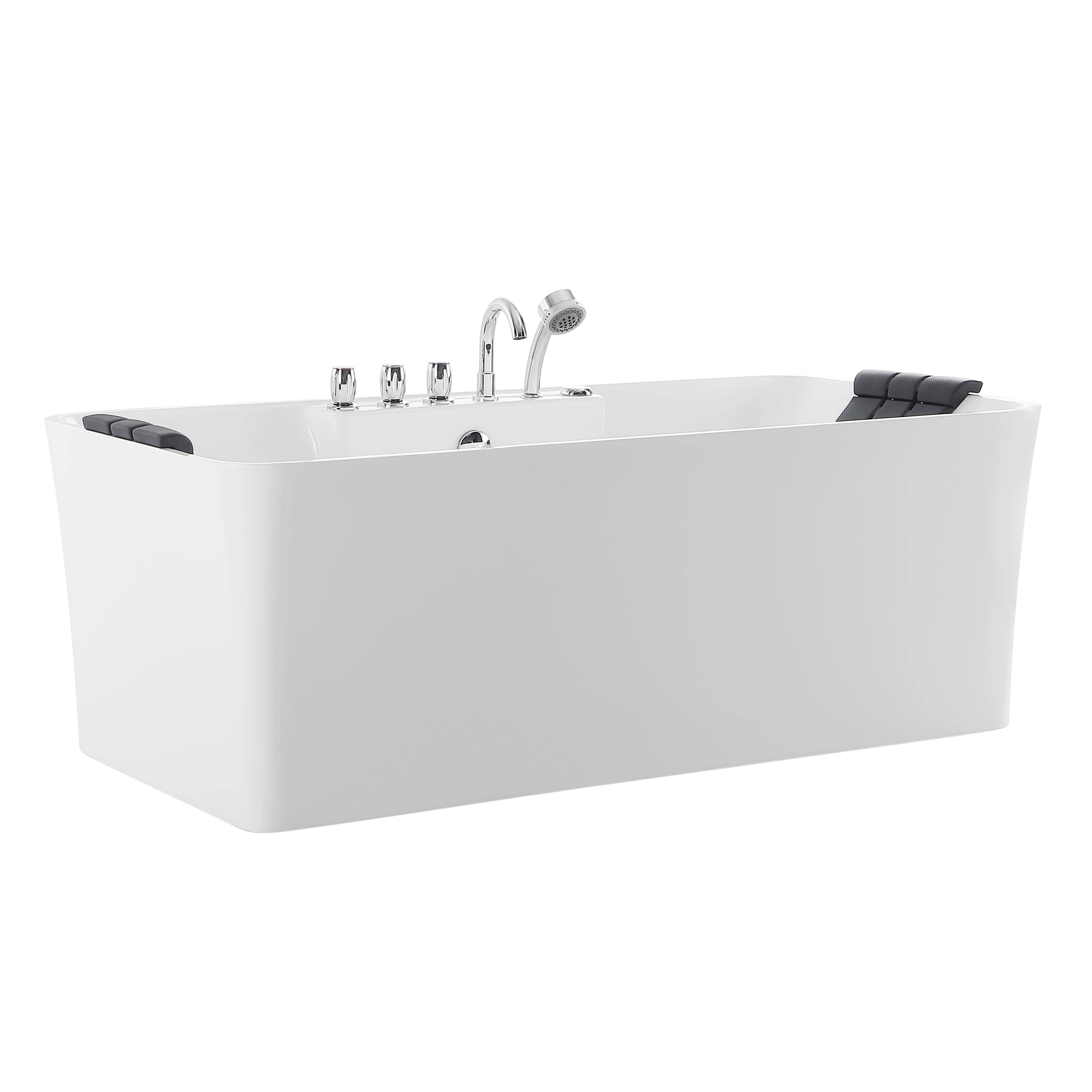 Empava 59 in. Center Drain Acrylic Freestanding Flatbottom Whirlpool Bathtub in White with Faucet- Water Jets