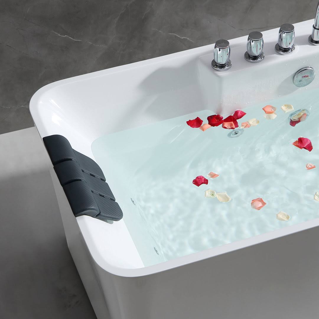 Empava Luxury 59 in. Center Drain Acrylic Freestanding Flatbottom Whirlpool Bathtub in White with Faucet
