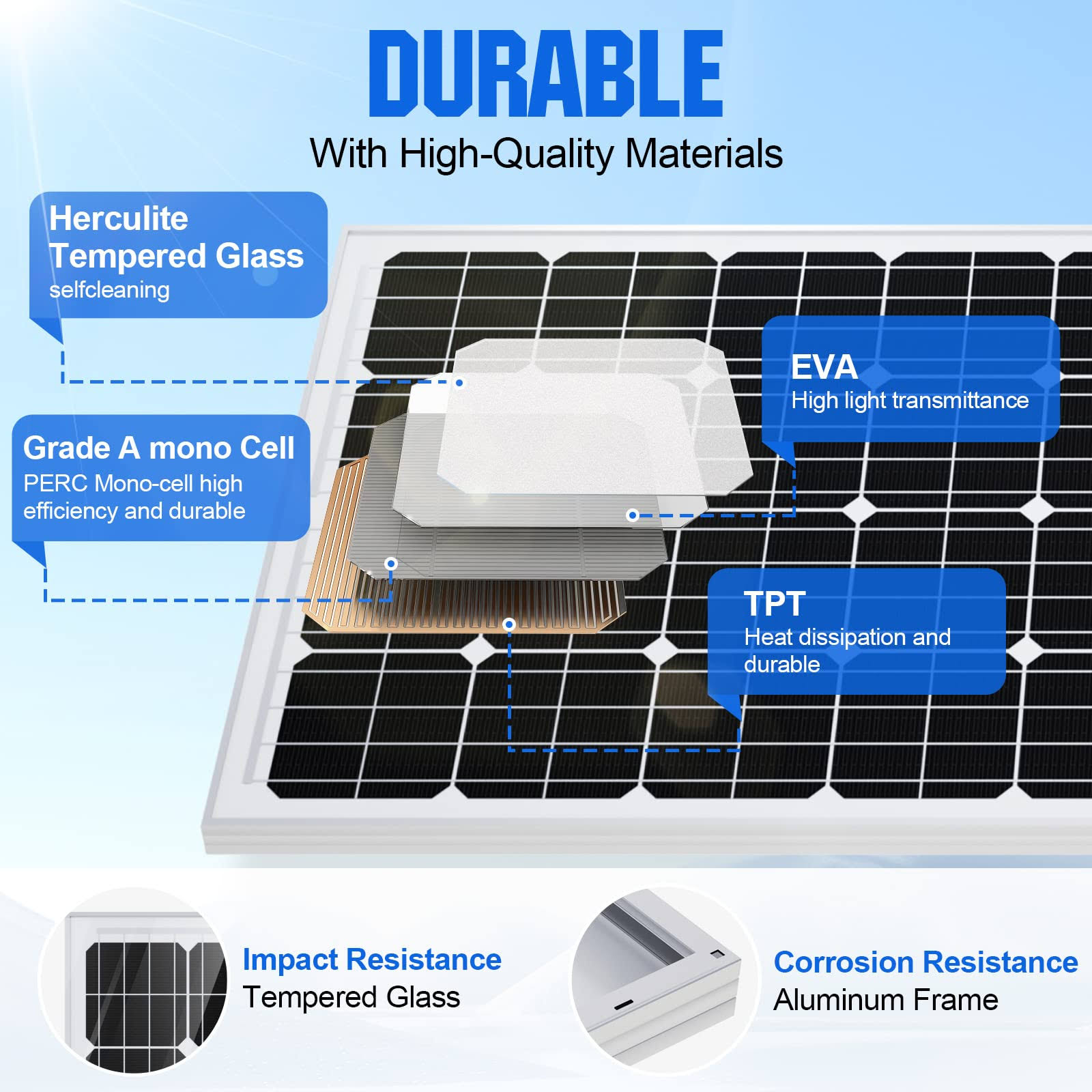 ECO-WORTHY 195 Watt 12 Volt Monocrystalline Solar Panel Module Off Grid PV Power for Battery Charging, Boat, Caravan, RV