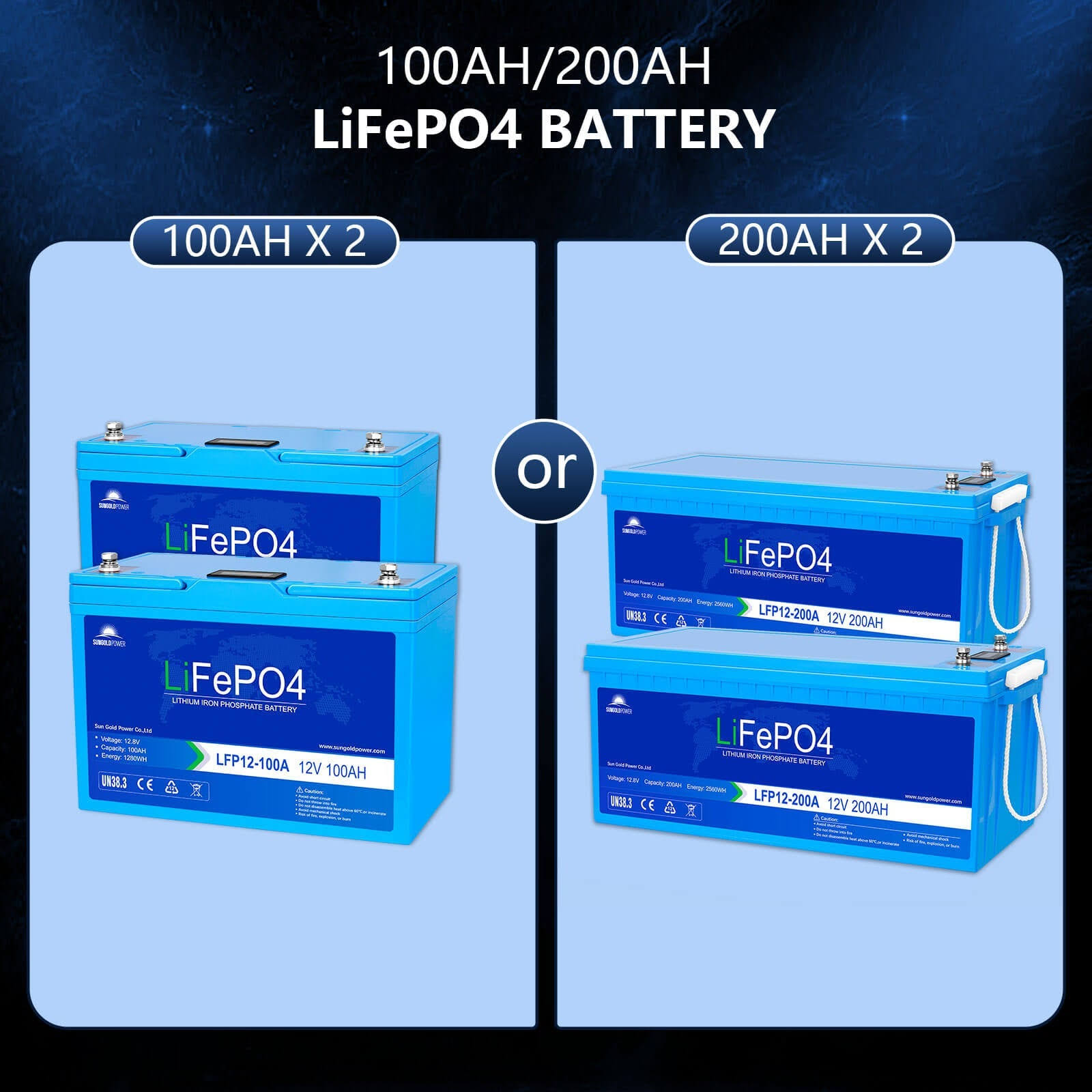 Sungold Power Off Grid Solar Kit 3000W Inverter 12VDC 120V Output LiFePO4 Battery 600 Watt Solar Back Up 200Ah