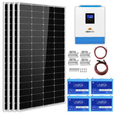 Sungold Power Off Grid Solar Kit 3000W Inverter 12VDC 120V Output LiFePO4 Battery 600 Watt Solar Back Up 100Ah