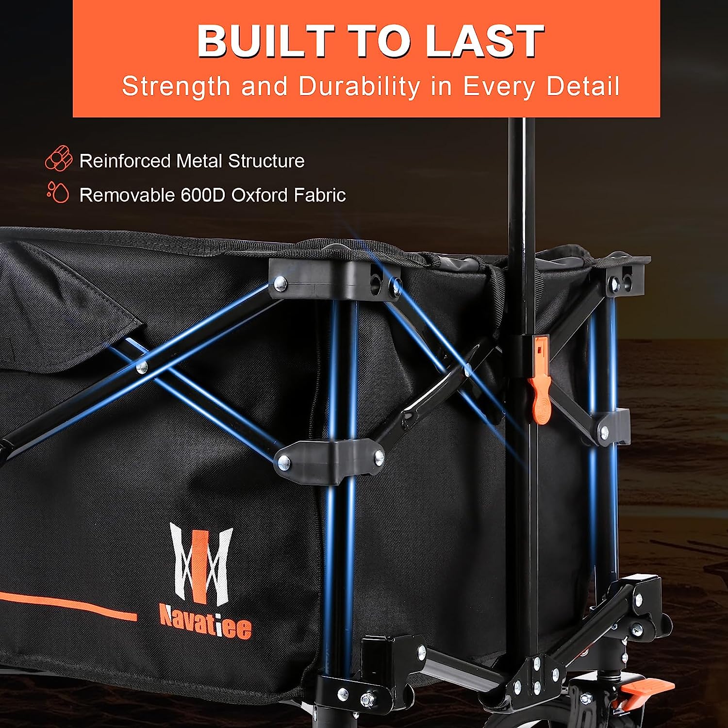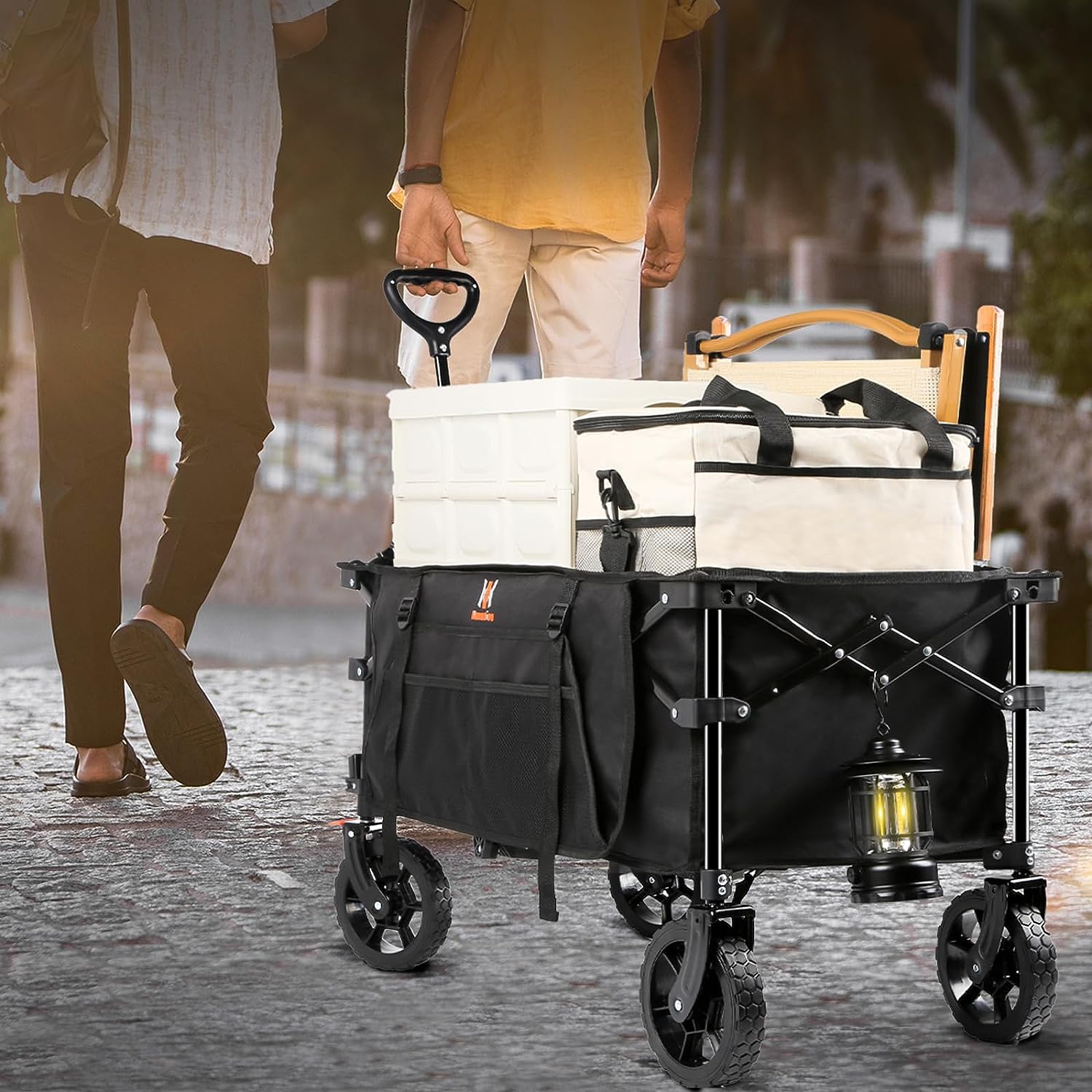 Navatiee Collapsible Folding Wagon. Heavy Duty Utility Beach Wagon Cart with Side Pocket and Brakes. Large Capacity Foldable Grocery Wagon for Garden Sports Outdoor Use. S1