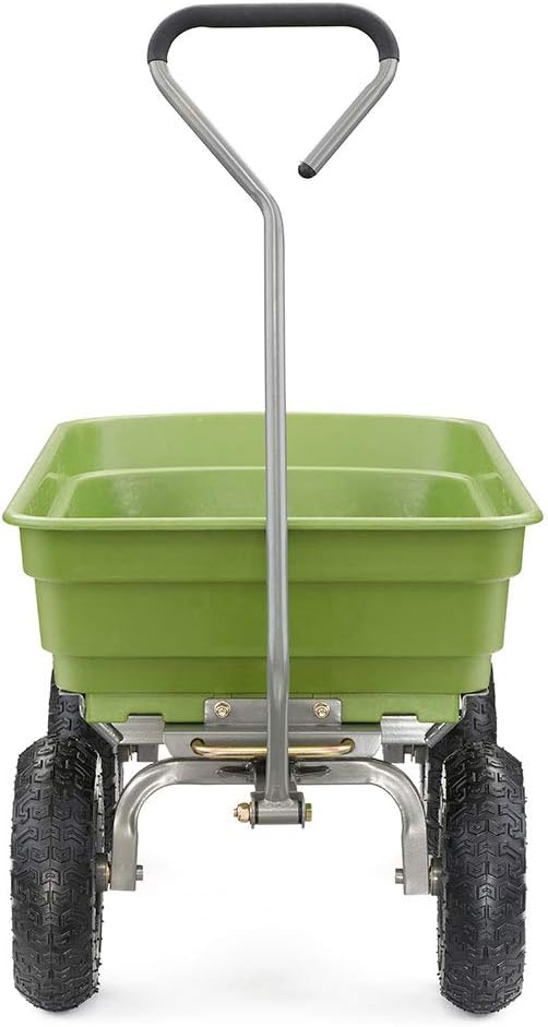 Gorilla Carts 600 Pound Capacity Heavy Duty Poly Yard Garden Steel Quick Dump Utility Wheelbarrow Wagon Trolley Cart with Straight Pull Handle. Green