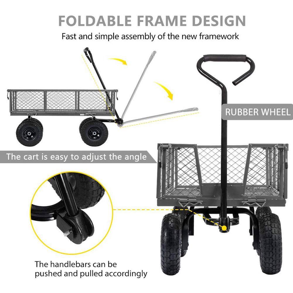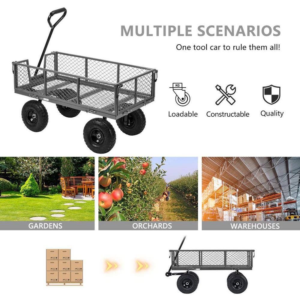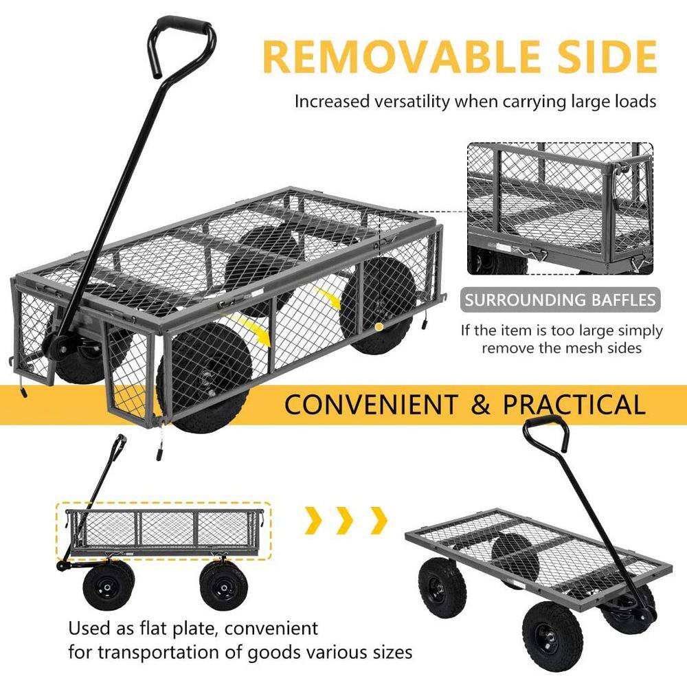 VIVOHOME X002MMKJFL 1100 lbs. Capacity Mesh Steel Garden Cart with Removable Sides and Wheels in Gray