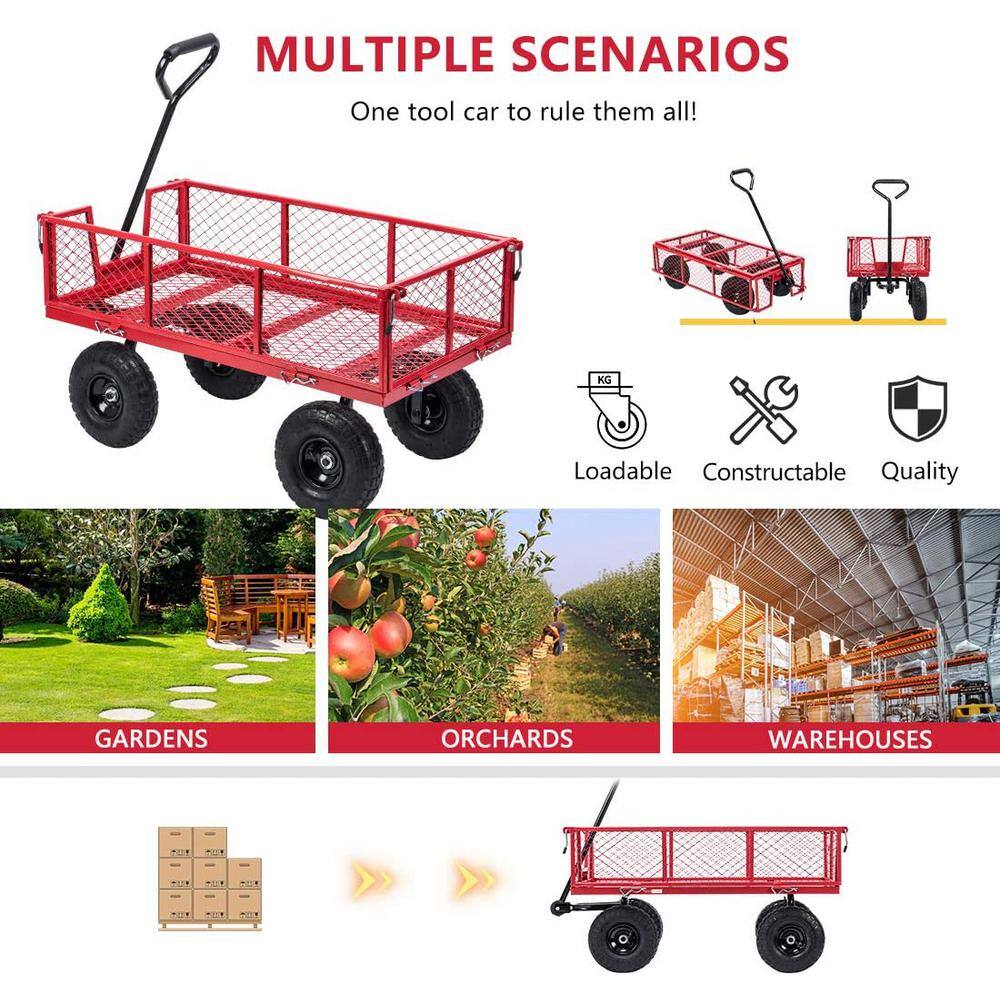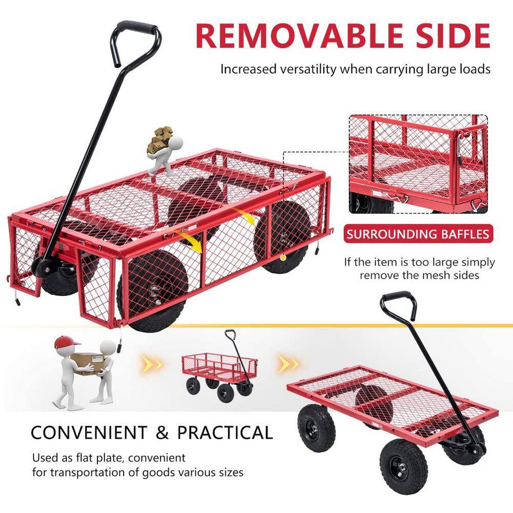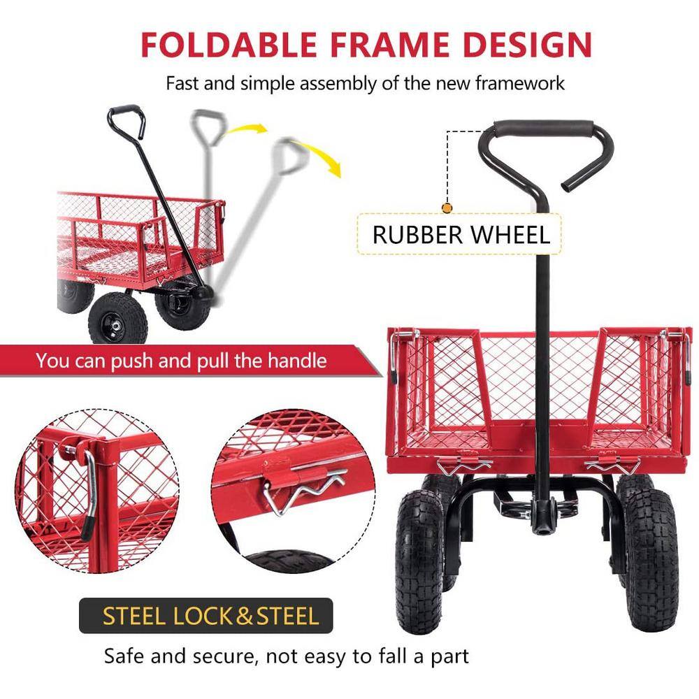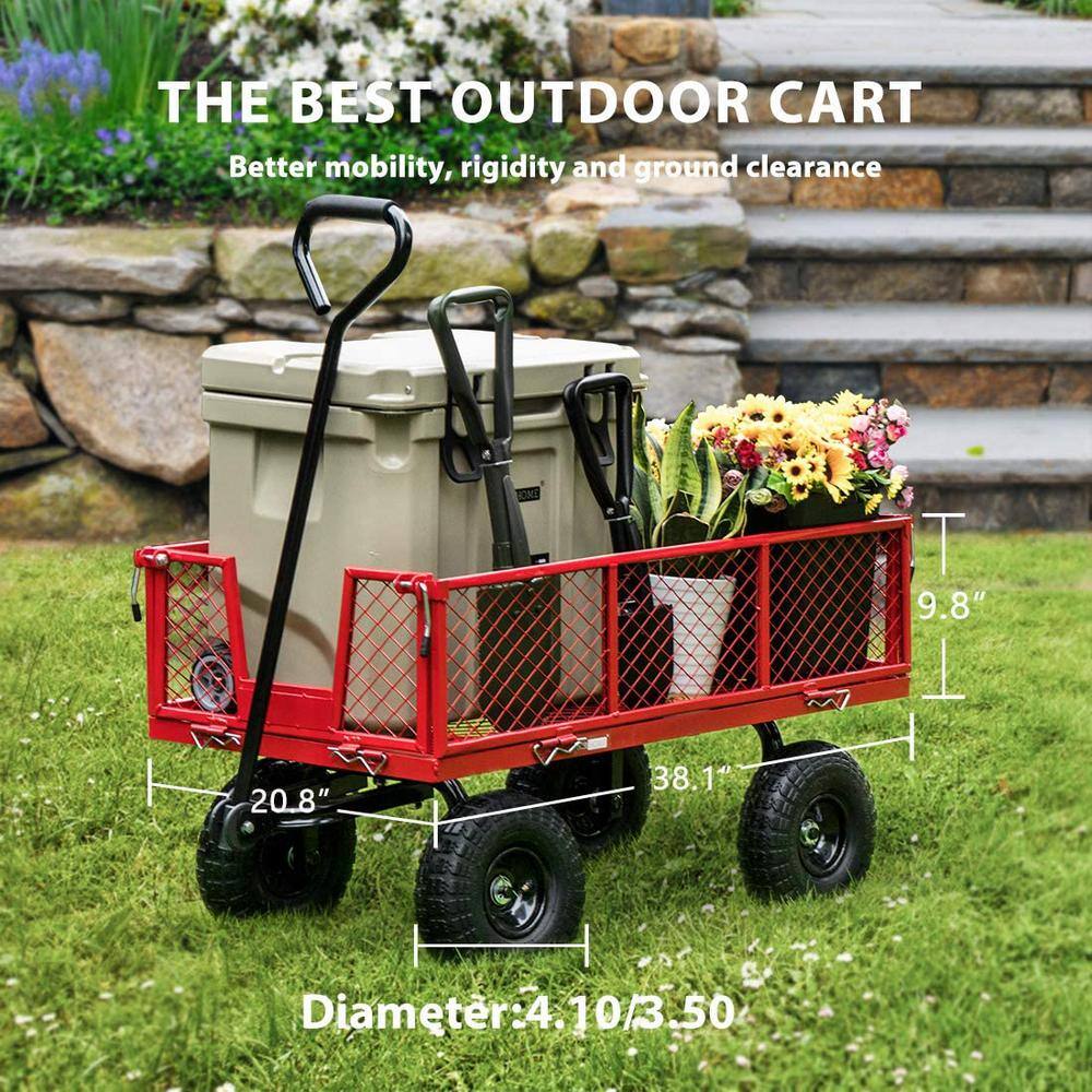 VIVOHOME X002HMDV7J 1100 lbs. Capacity Mesh Steel Garden Cart in Red with Removable Sides and Wheels