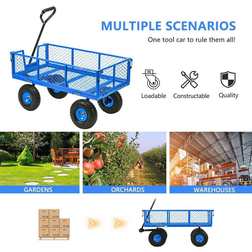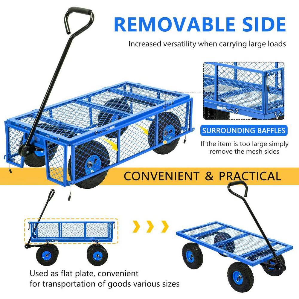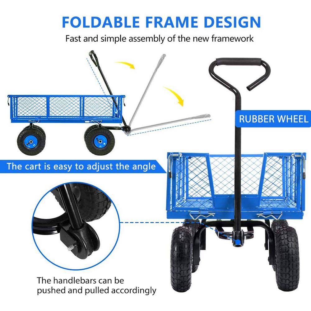 VIVOHOME X002MM80ED 1100 lbs. 4.3 cu.ft. Capacity Mesh Steel Garden Cart in Blue with Removable Sides and Wheels