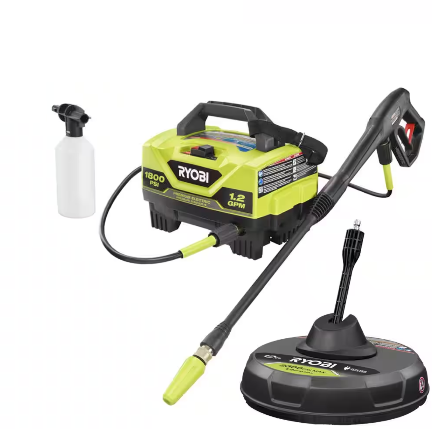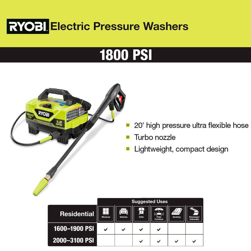 RYOBI 1800 PSI 1.2 GPM Cold Water Electric Pressure Washer with Surface Cleaner