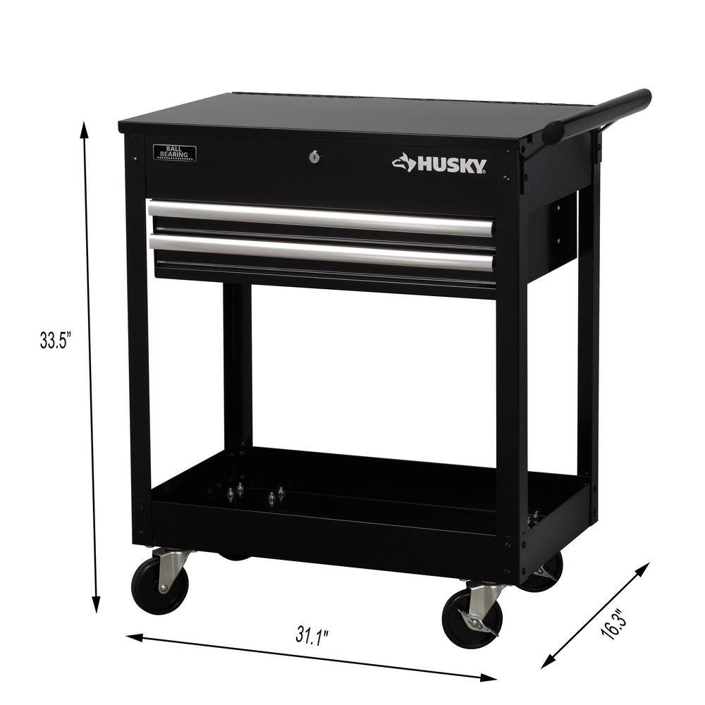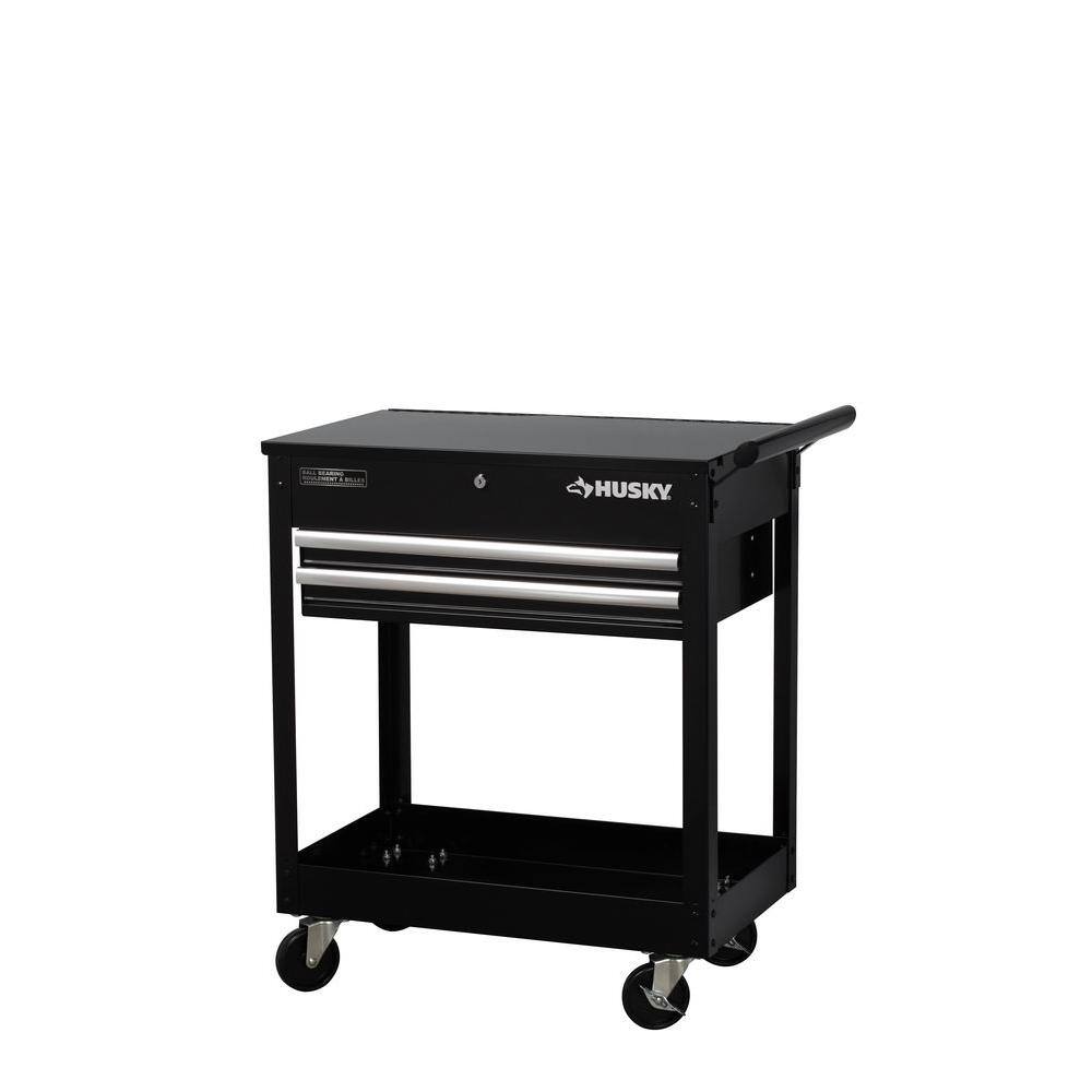 Husky H2DMC 28 in. W x 16.3 in. D Standard Duty 2-Drawer Rolling Tool Utility Cart with Lift-Top in Gloss Black