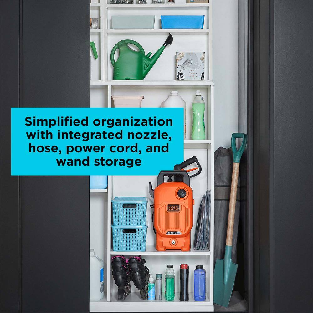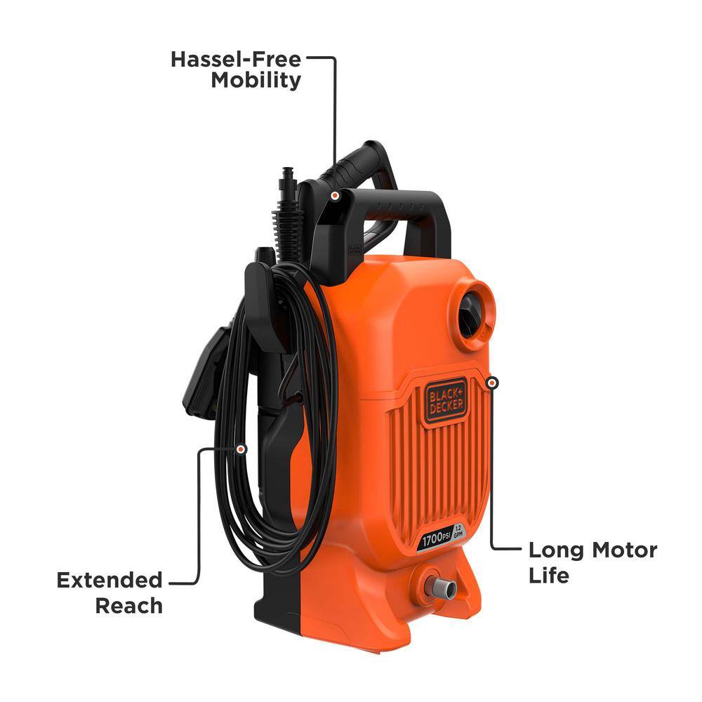 BLACK+DECKER BEPW1700 1700 PSI 1.2 GPM Cold Water Electric Pressure Washer with Integrated Wand and Hose Storage