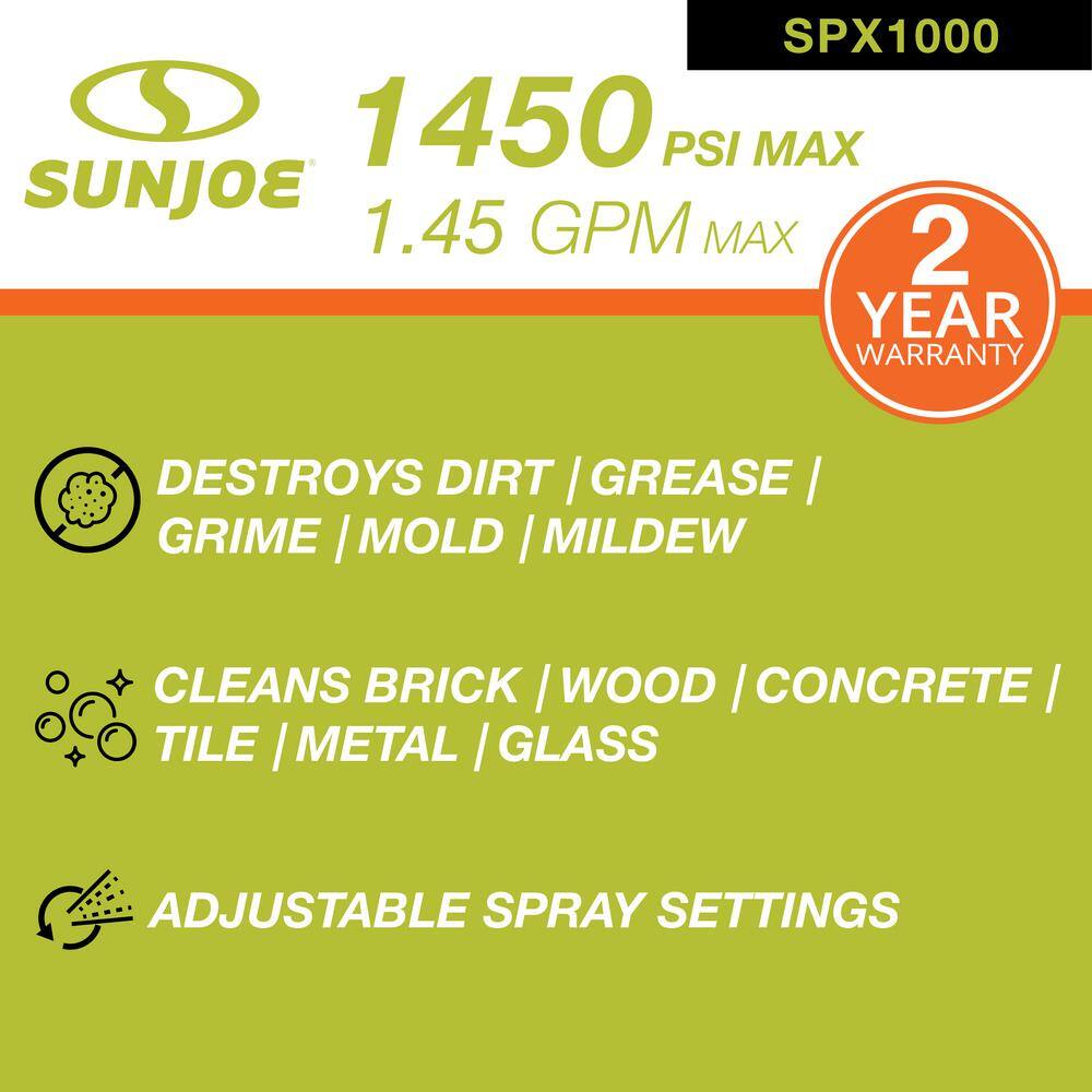 Sun Joe SPX1000 1450 PSI 1.45 GPM 11.5 Amp Electric Pressure Washer