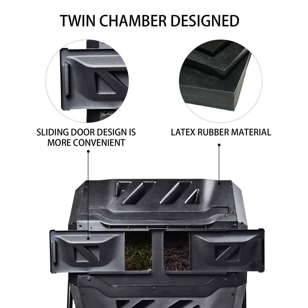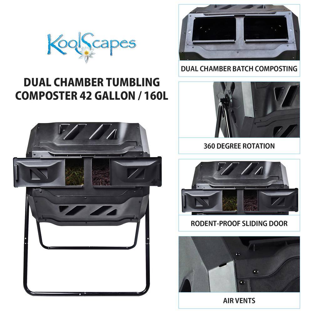 KoolScapes TCB-42 Koolscapes Dual Chamber Tumbling Composter 42 Gal. (160L). Black Rotating Outdoor Compost Bin